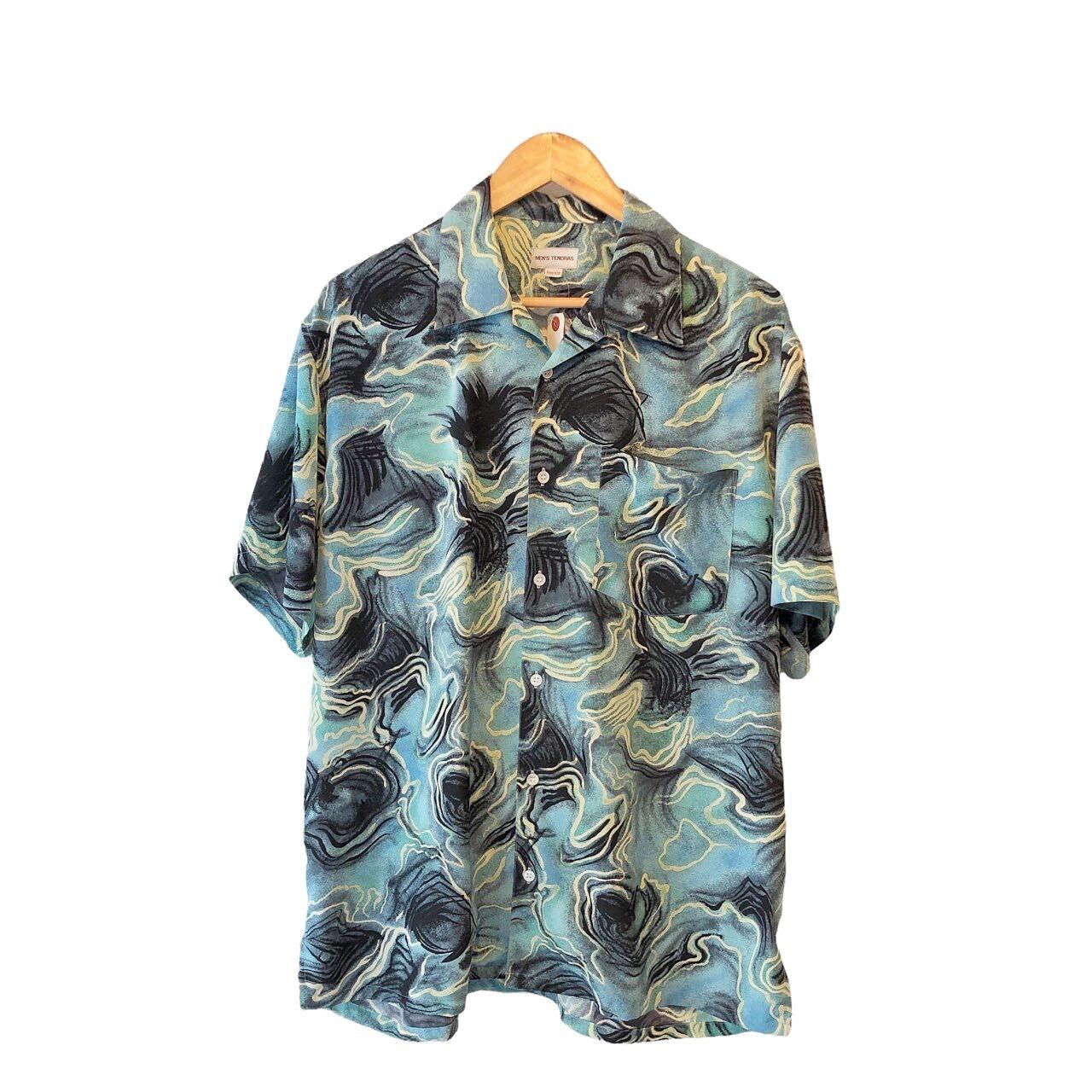 "MEN’S TENORAS" Open collar design unique pattern S/S shirt