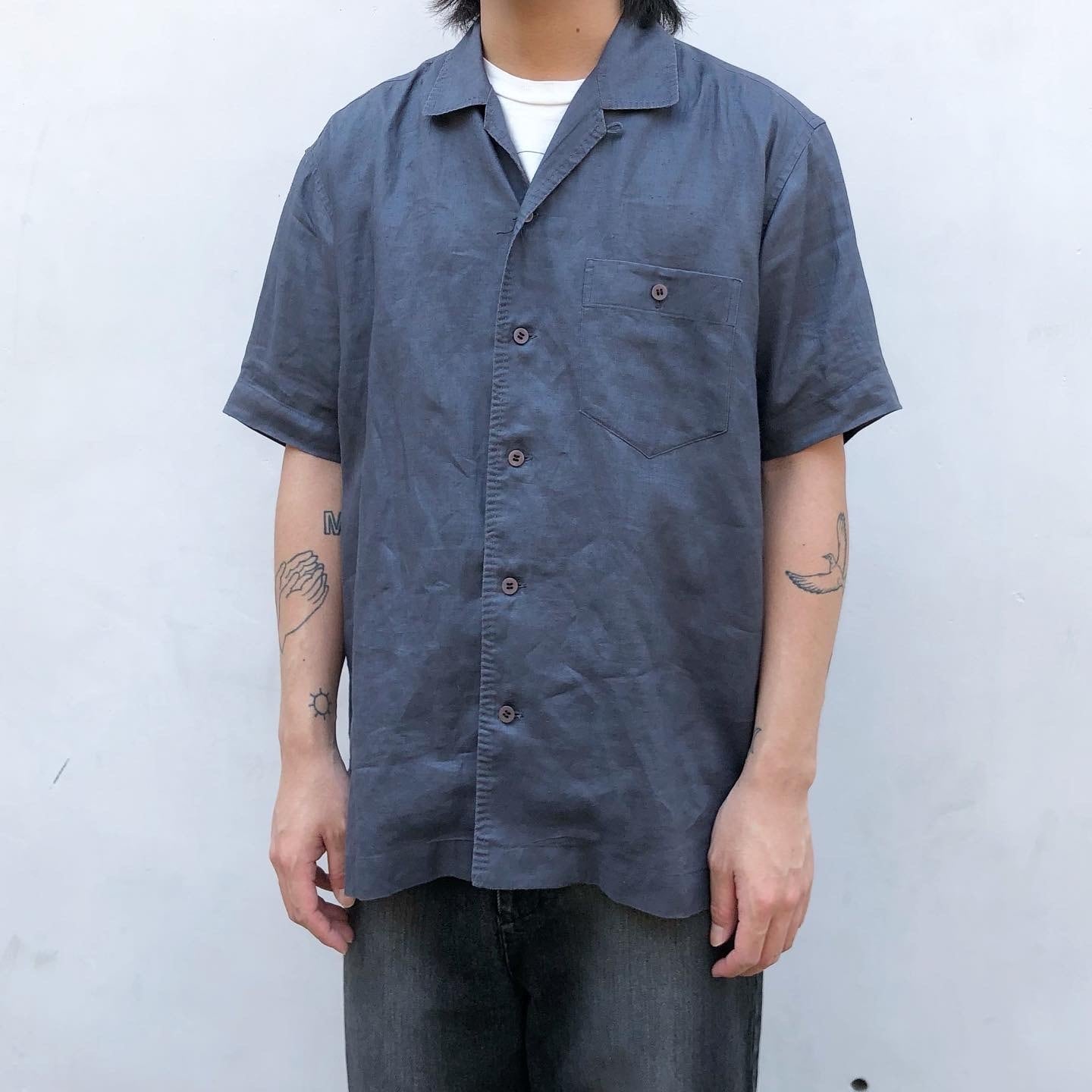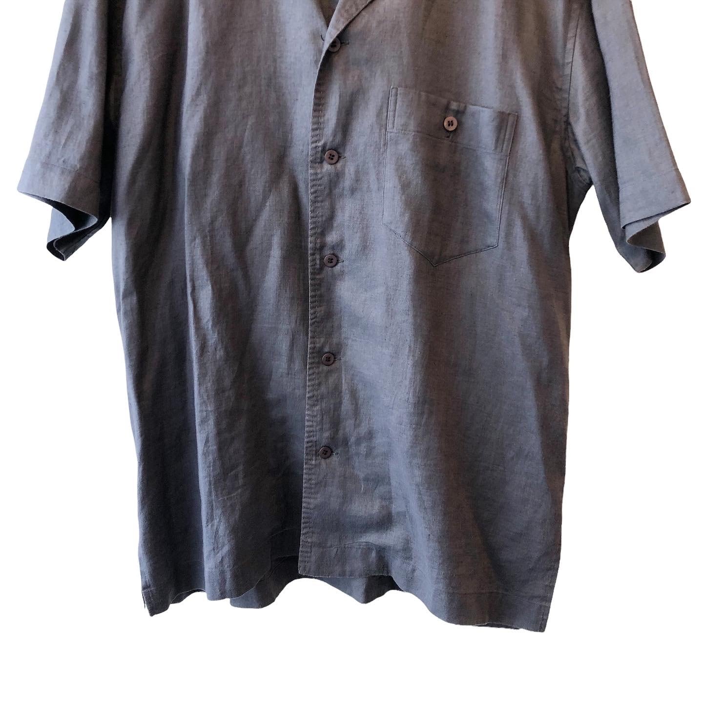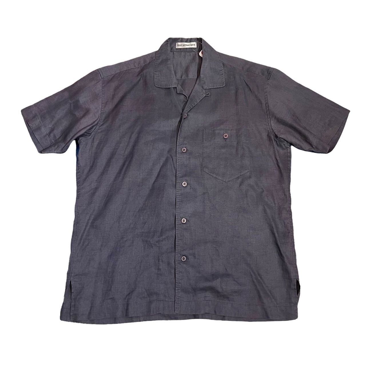 "ISSEY MIYAKE MEN" light grey linen design S/S open collar shirt