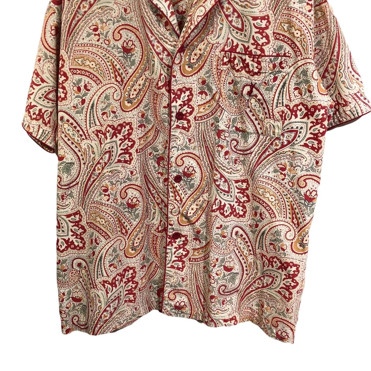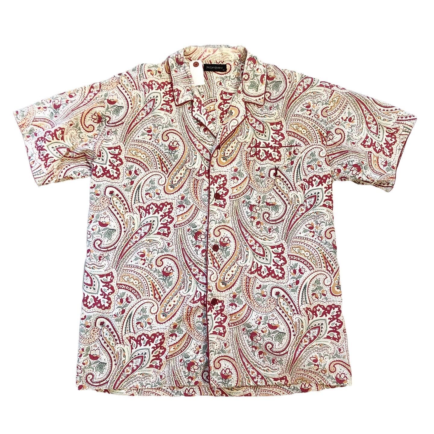 "YVES SAINT LAURENT" Paisley pattern cotton design S/S open collar pajama shirt