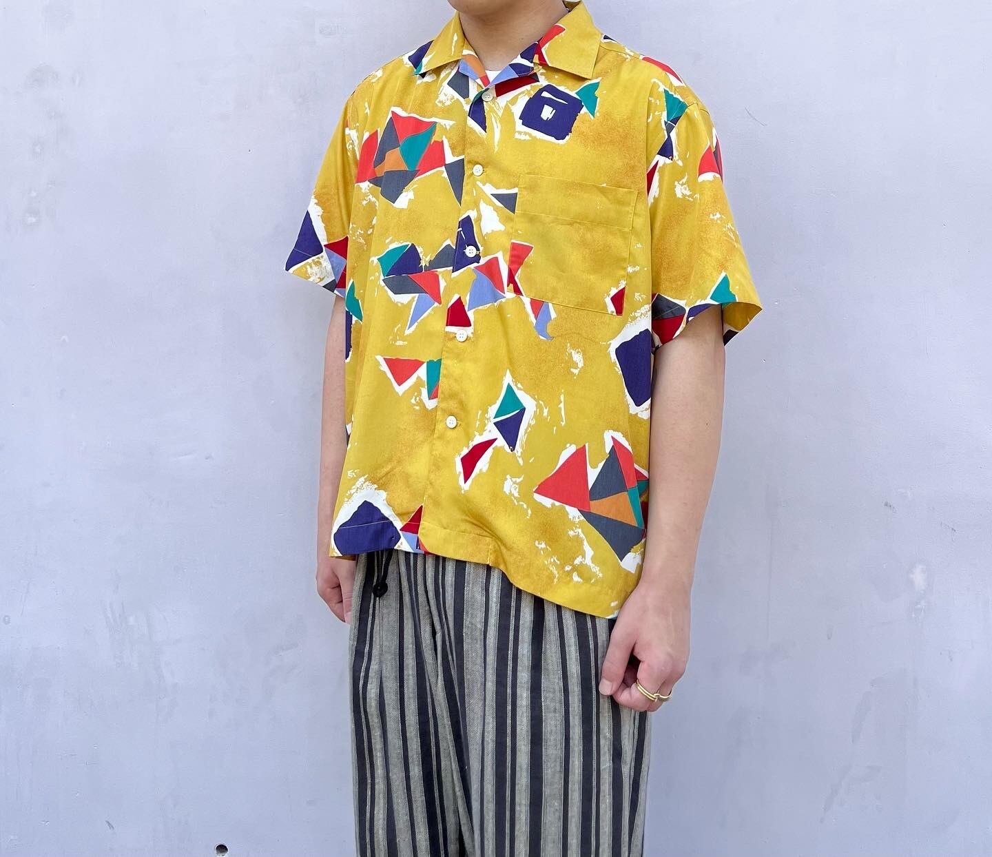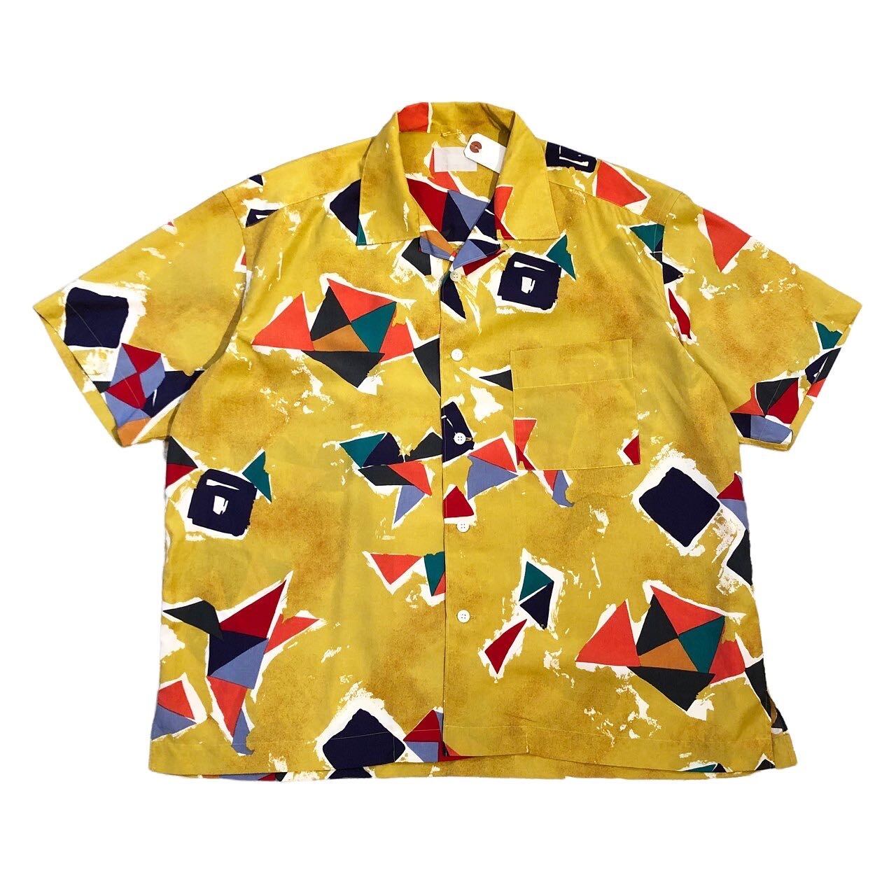 "LAUTREAMONT" Unique pattern polyester S/S open collar shirt