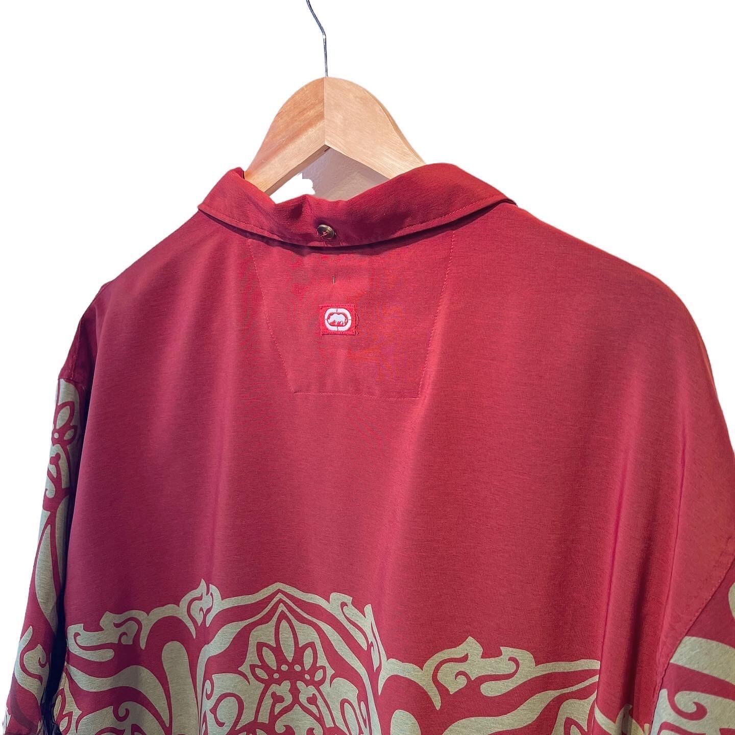 "ECKO" red base polyester unique pattern S/S open collar shirt
