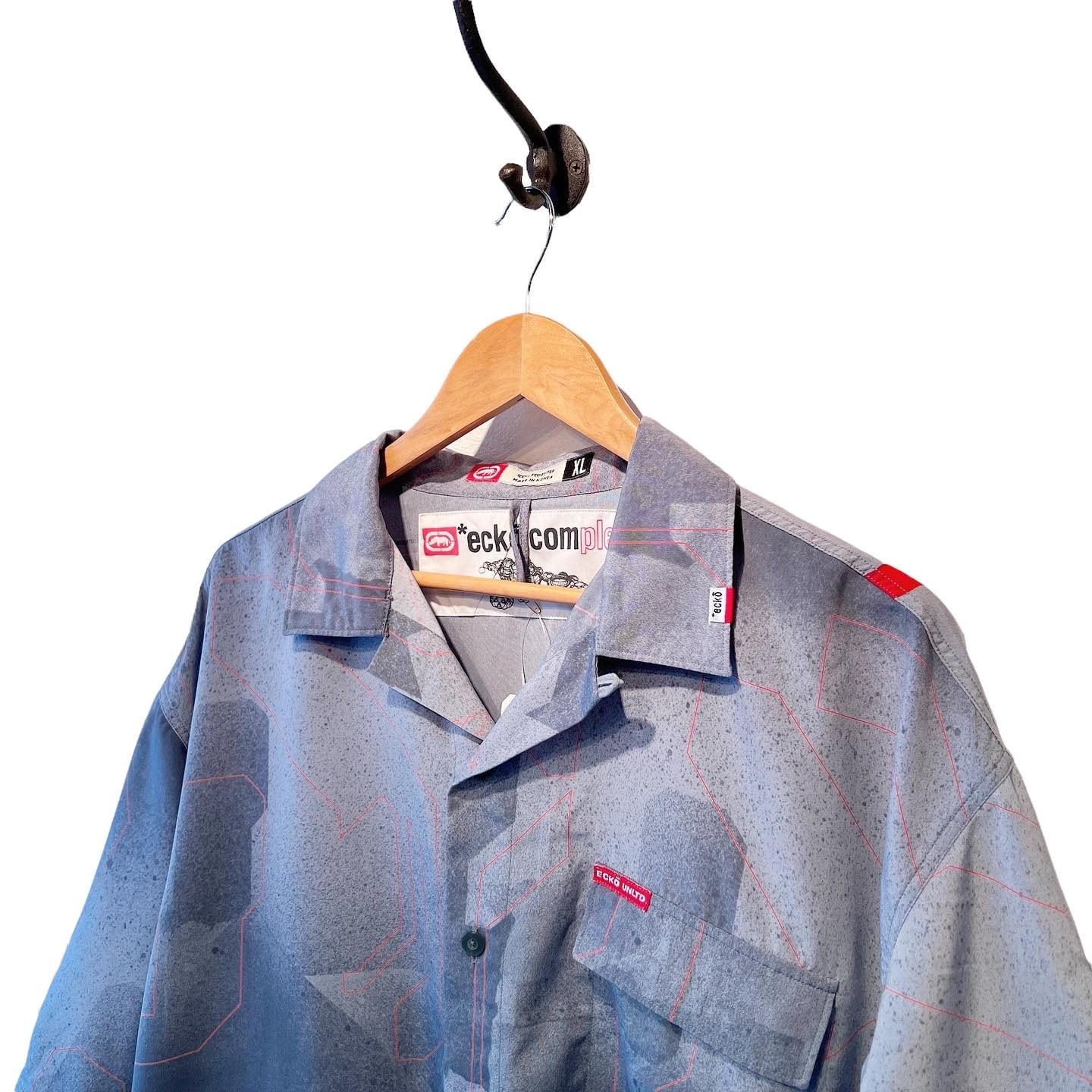 "ecko" Smoke gray base polyester unique pattern S/S open collar shirt