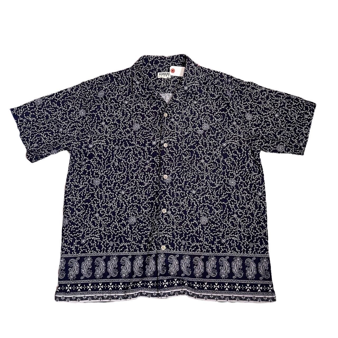 "KANSAI" Unique pattern cotton design S/S open collar shirt