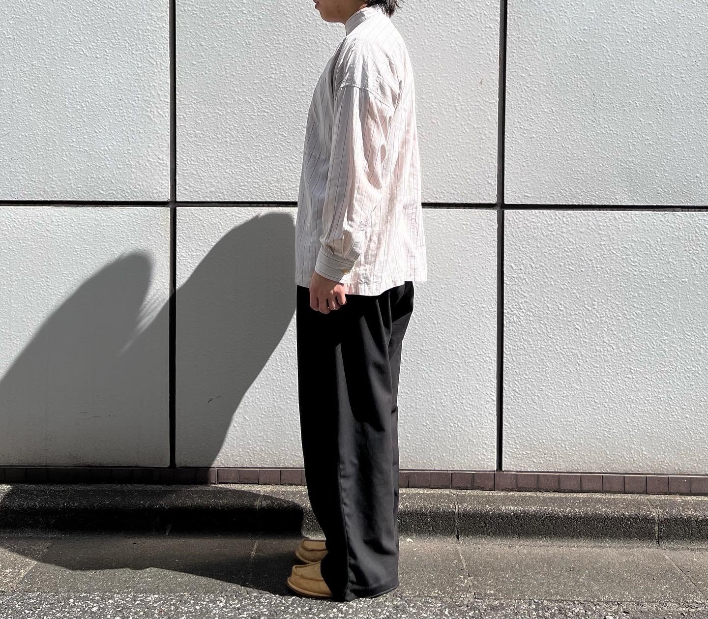 "ISSEY MIYAKE MEN" Stripe cotton/rayon L/S band collar shirt
