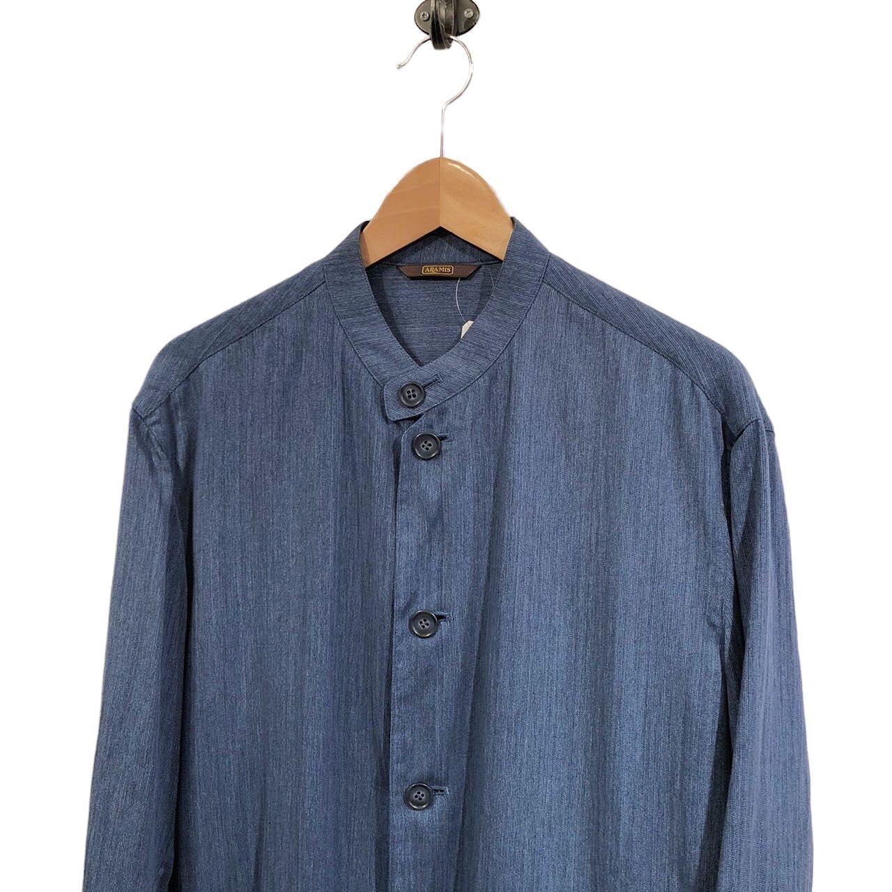 "ARAMIS" Blue cotton/polyester band collar L/S shirt