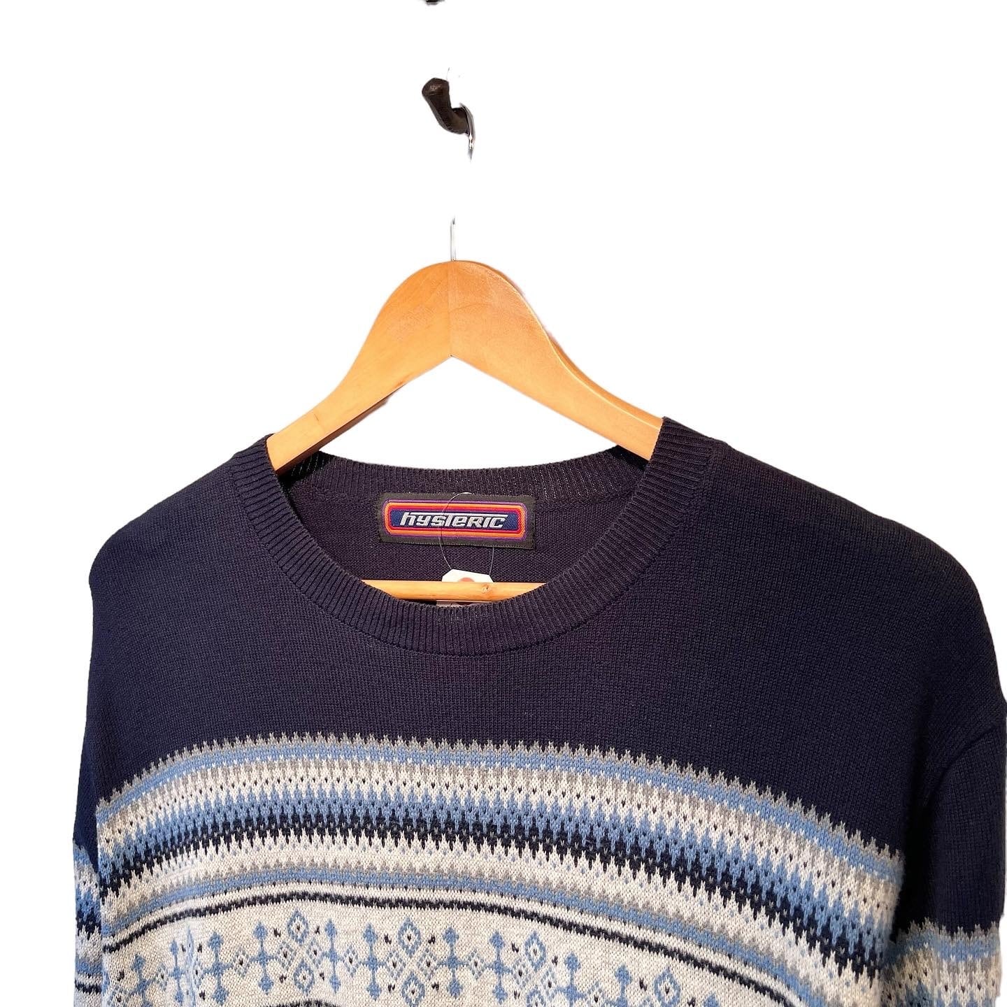 "hysteric" Navy base cotton design knit sweater
