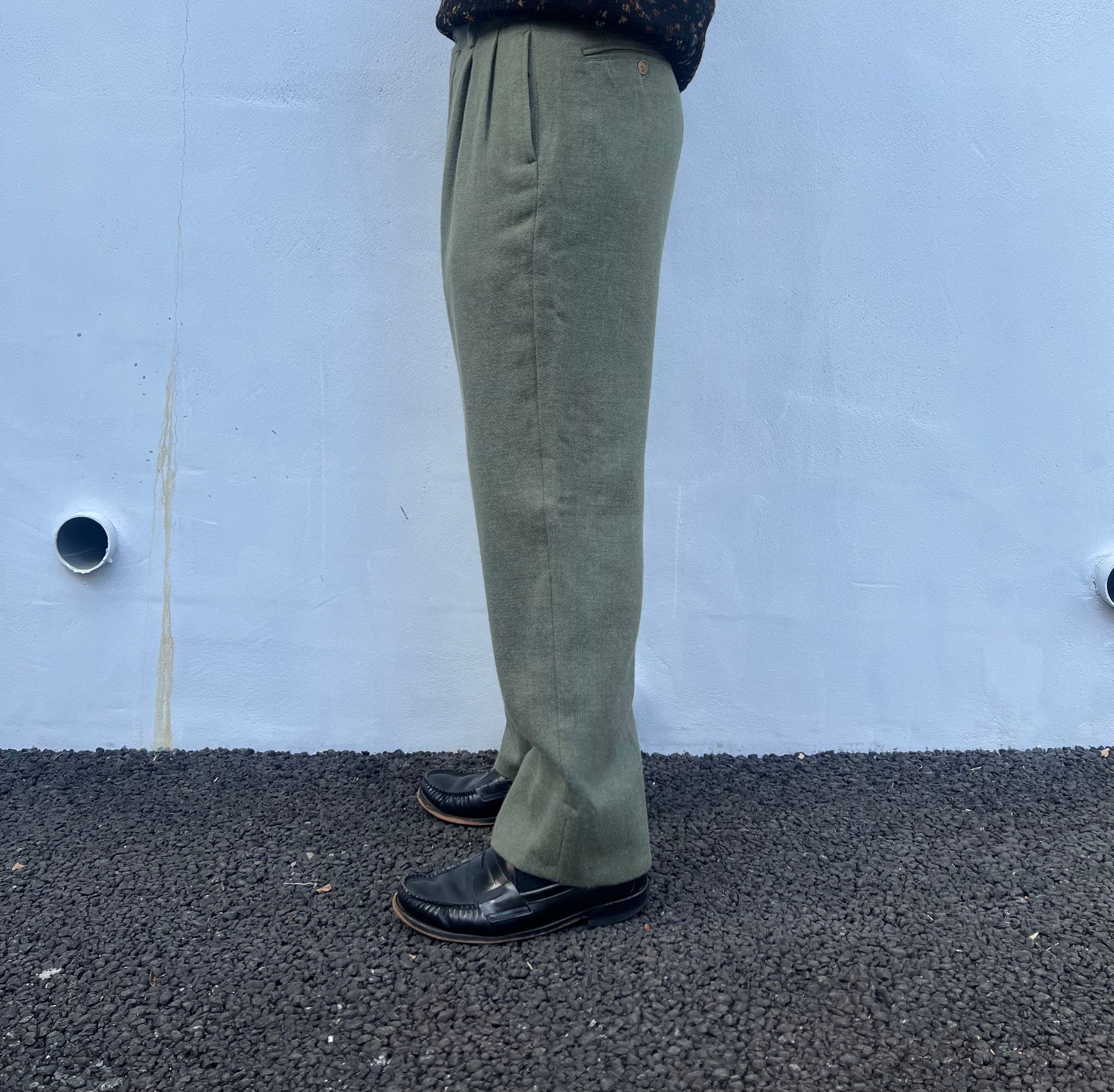 "MEN’S BIGI" Green wool 2tuck slacks pants