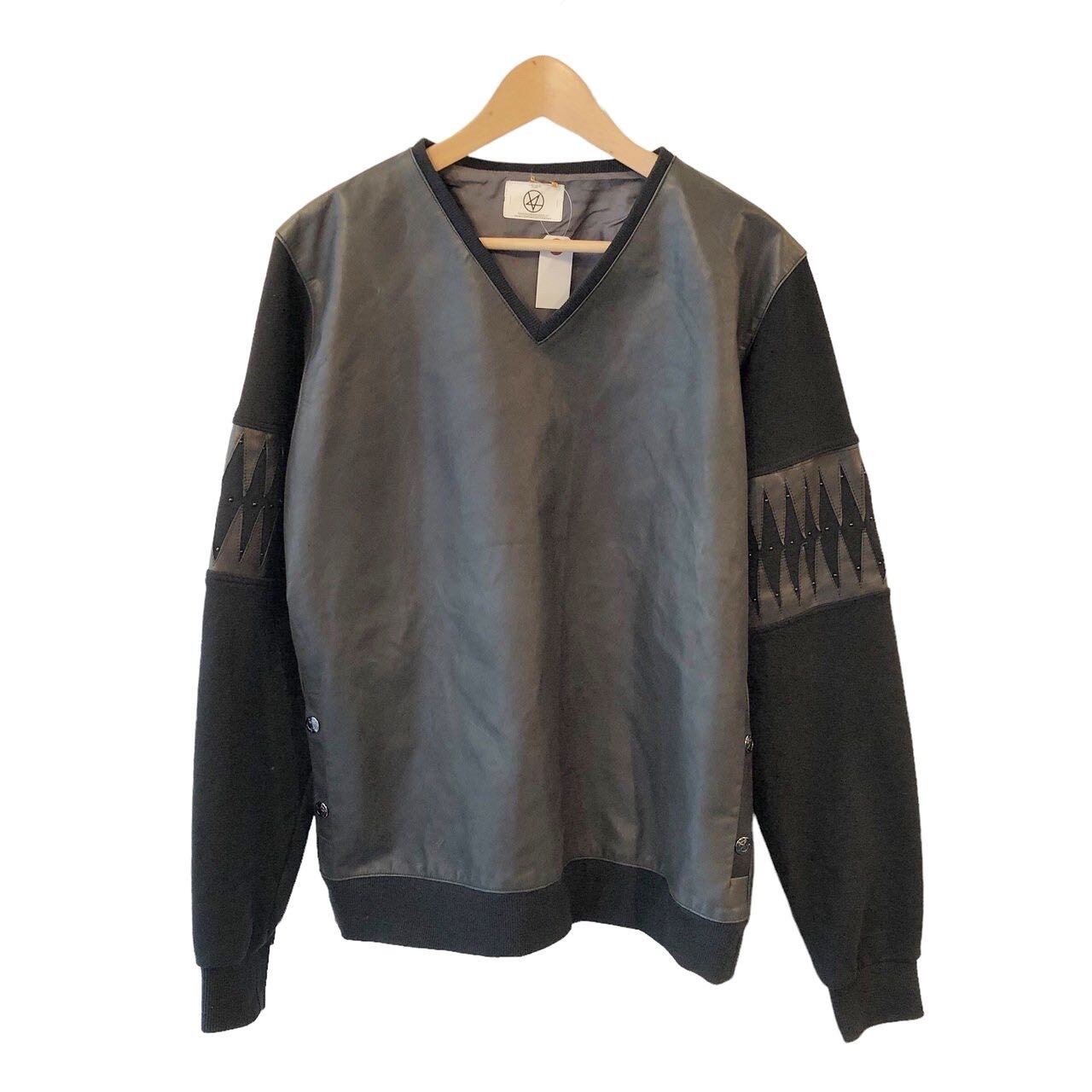 "CORVETTE by exit for dis" black cow leather/cotton pullover blouson