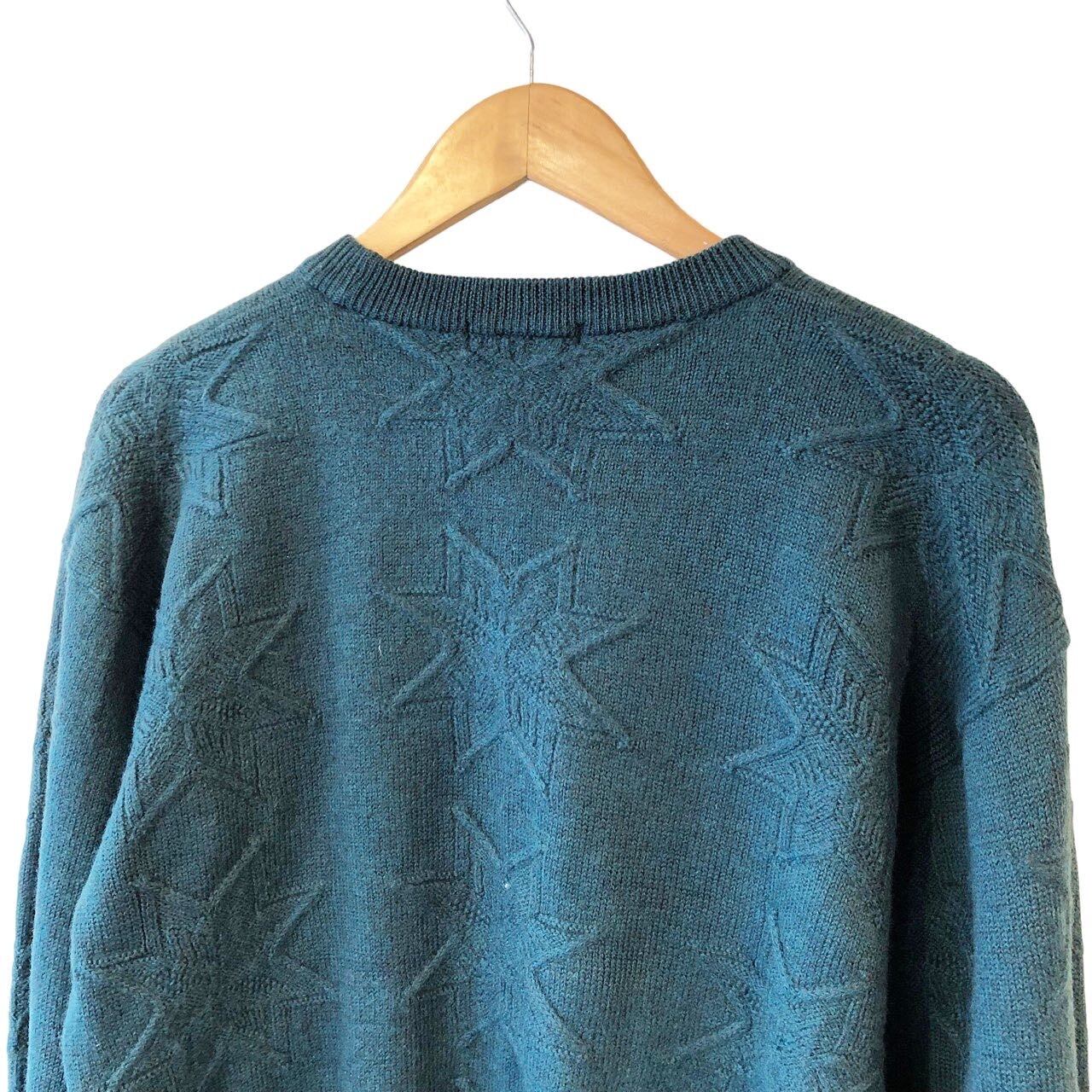 "YSL" Green wool star motif crewneck sweater