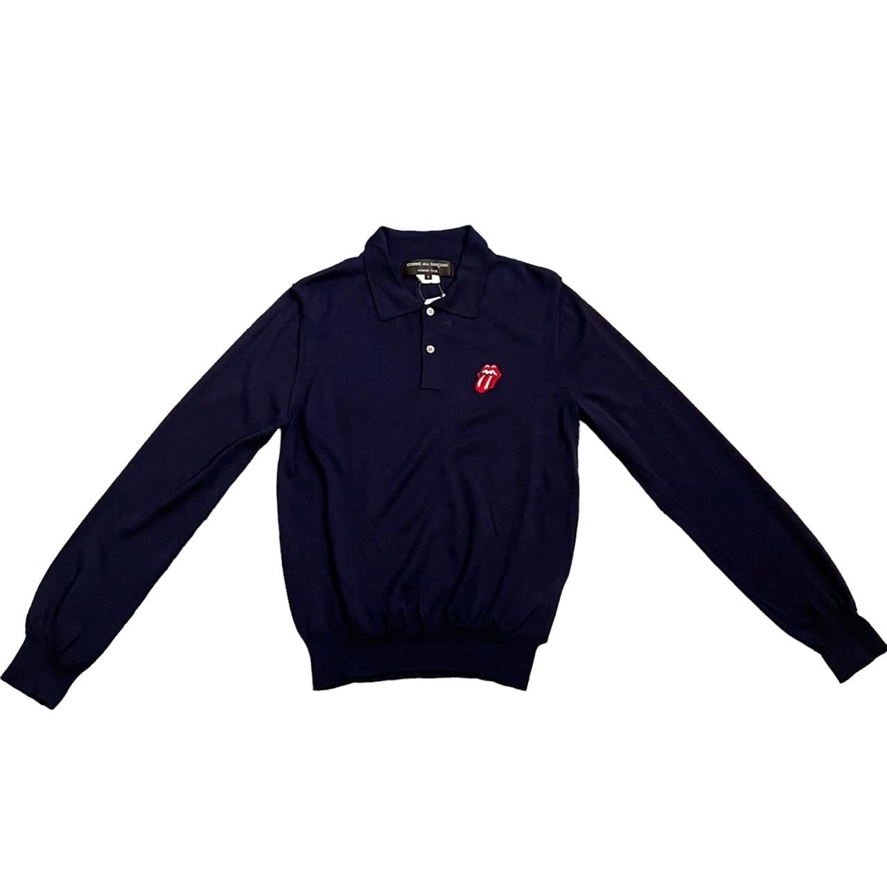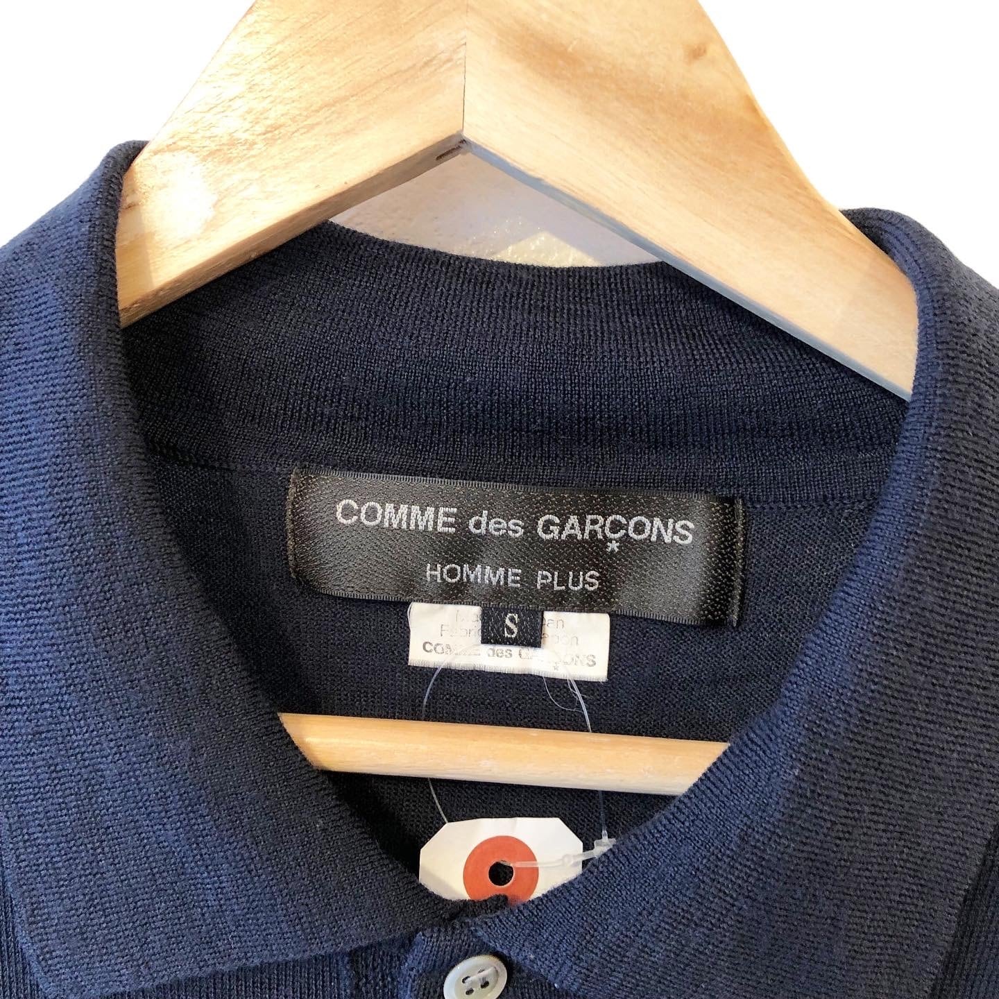 "GARCONS HOMME PLUS" Dark navy wool design knit polo