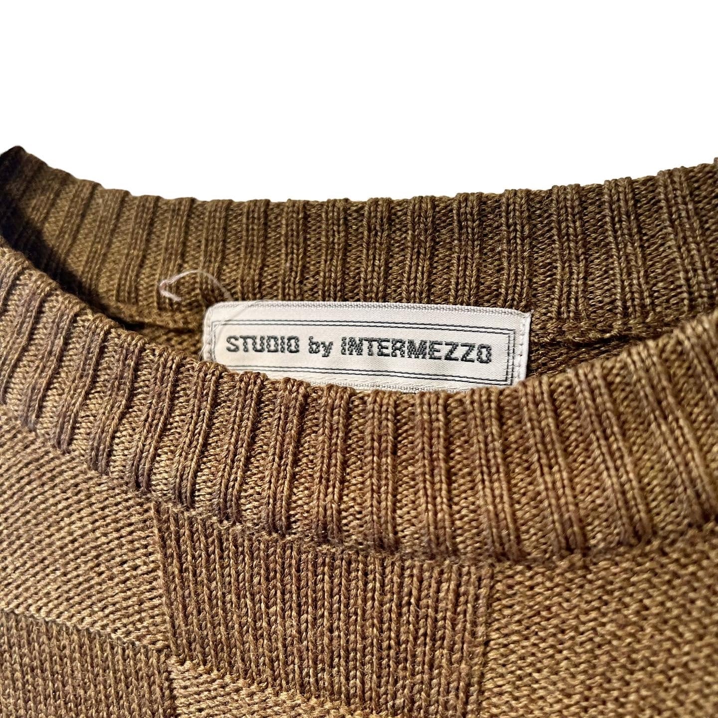 "STUDIO by INTERMEZZO" brown wool/acrylic crewneck panel sweater