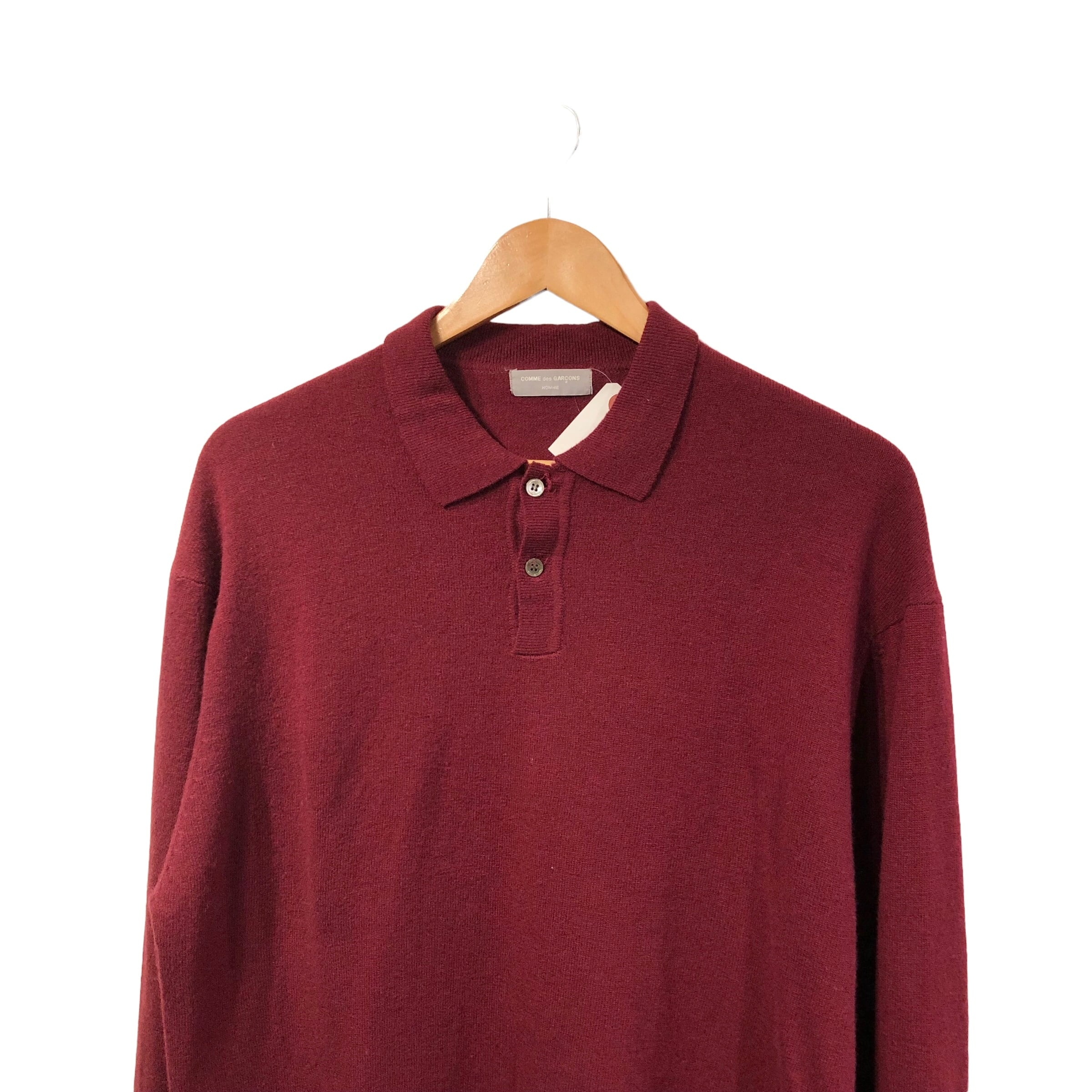 "GARÇONS HOMME" Wine-red wool/nylon design knit polo