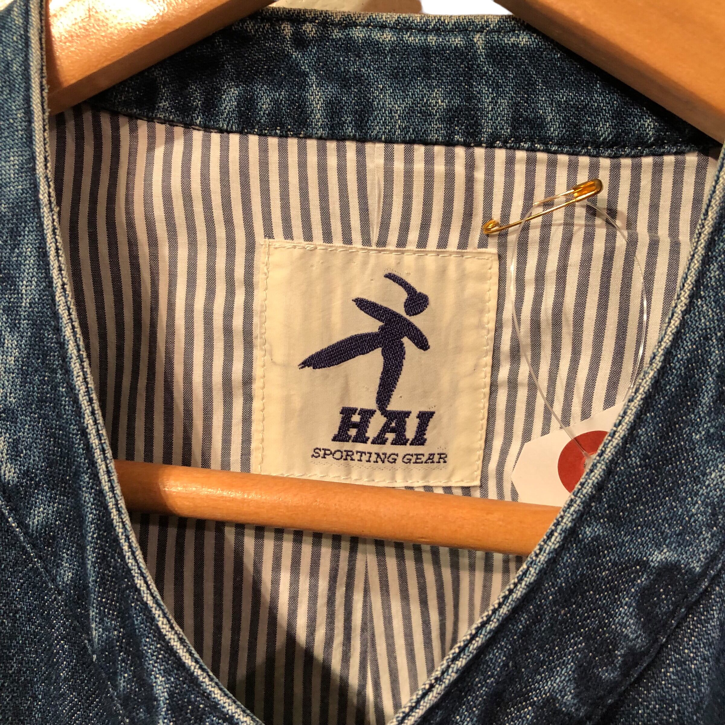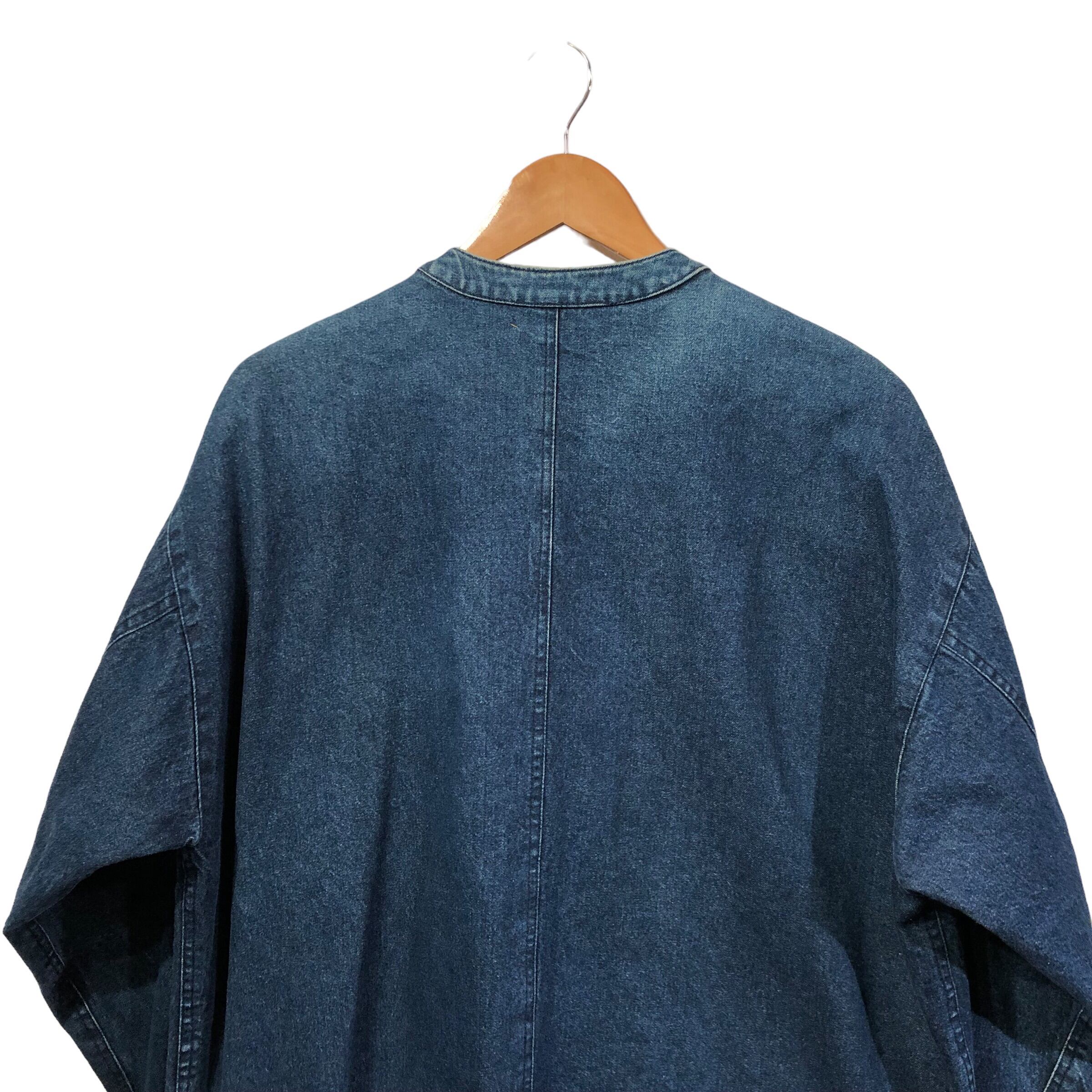 "ISSEY MIYAKE HAI" Indigo blue cotton design collarless blouson