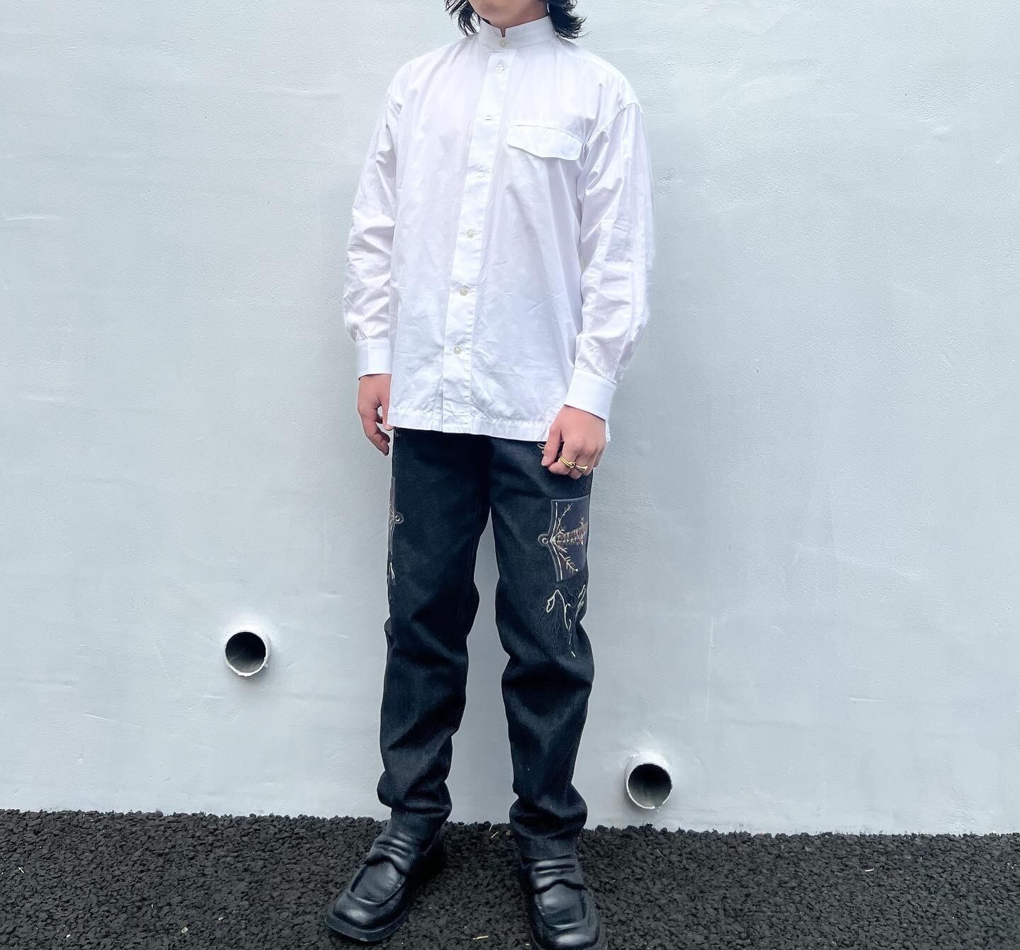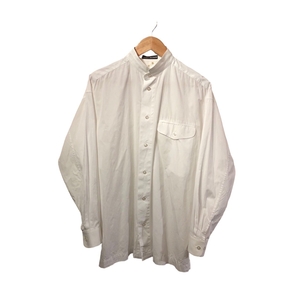 "ISSEY MIYAKE" White cotton stand collar L/S shirt