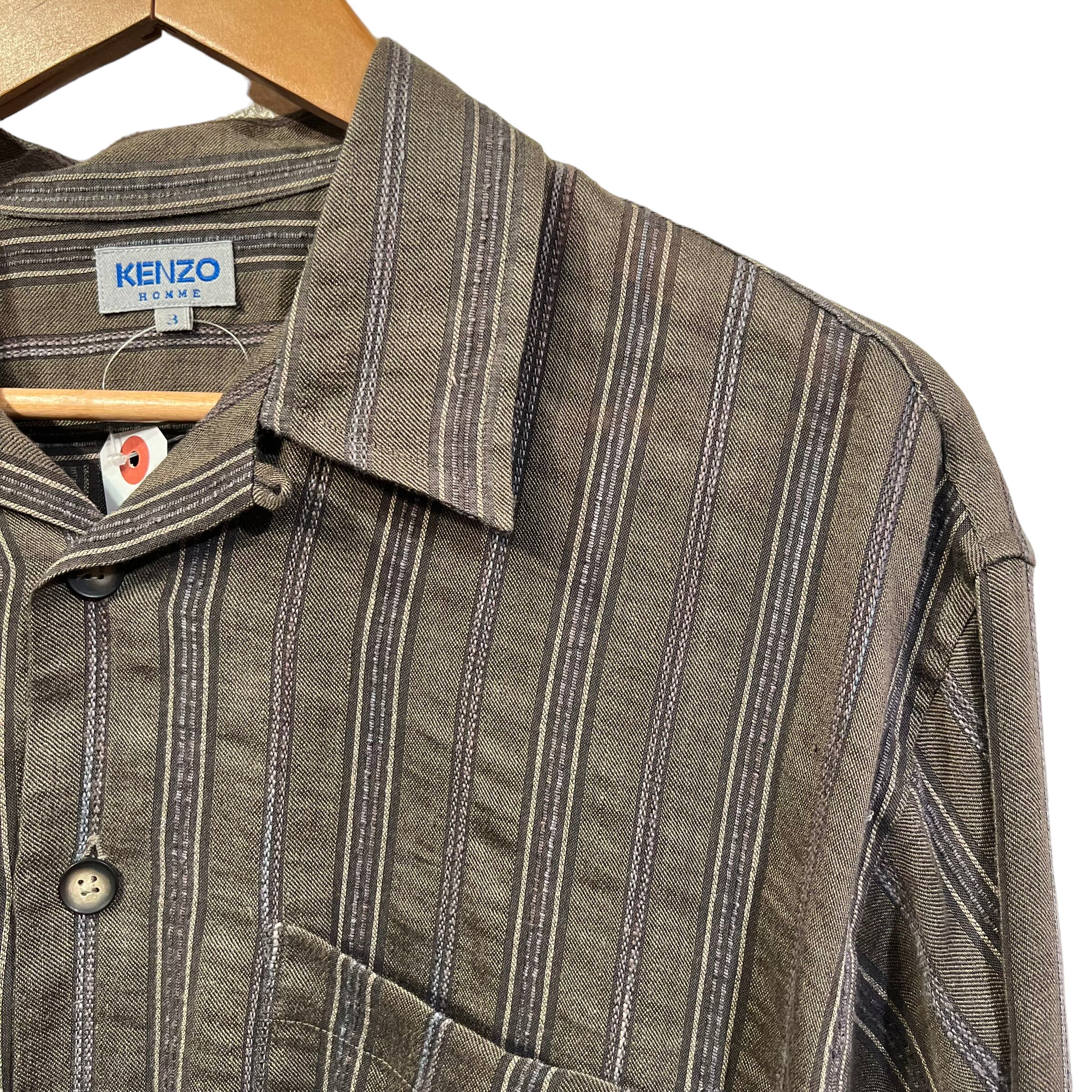 "KENZO" Stripe&stitch design linen/cotton L/S shirt