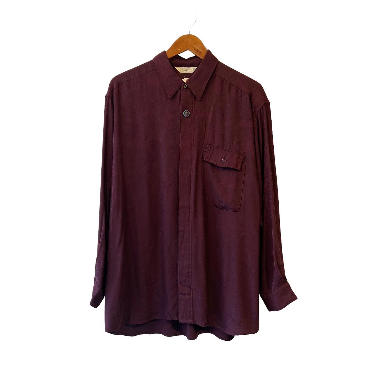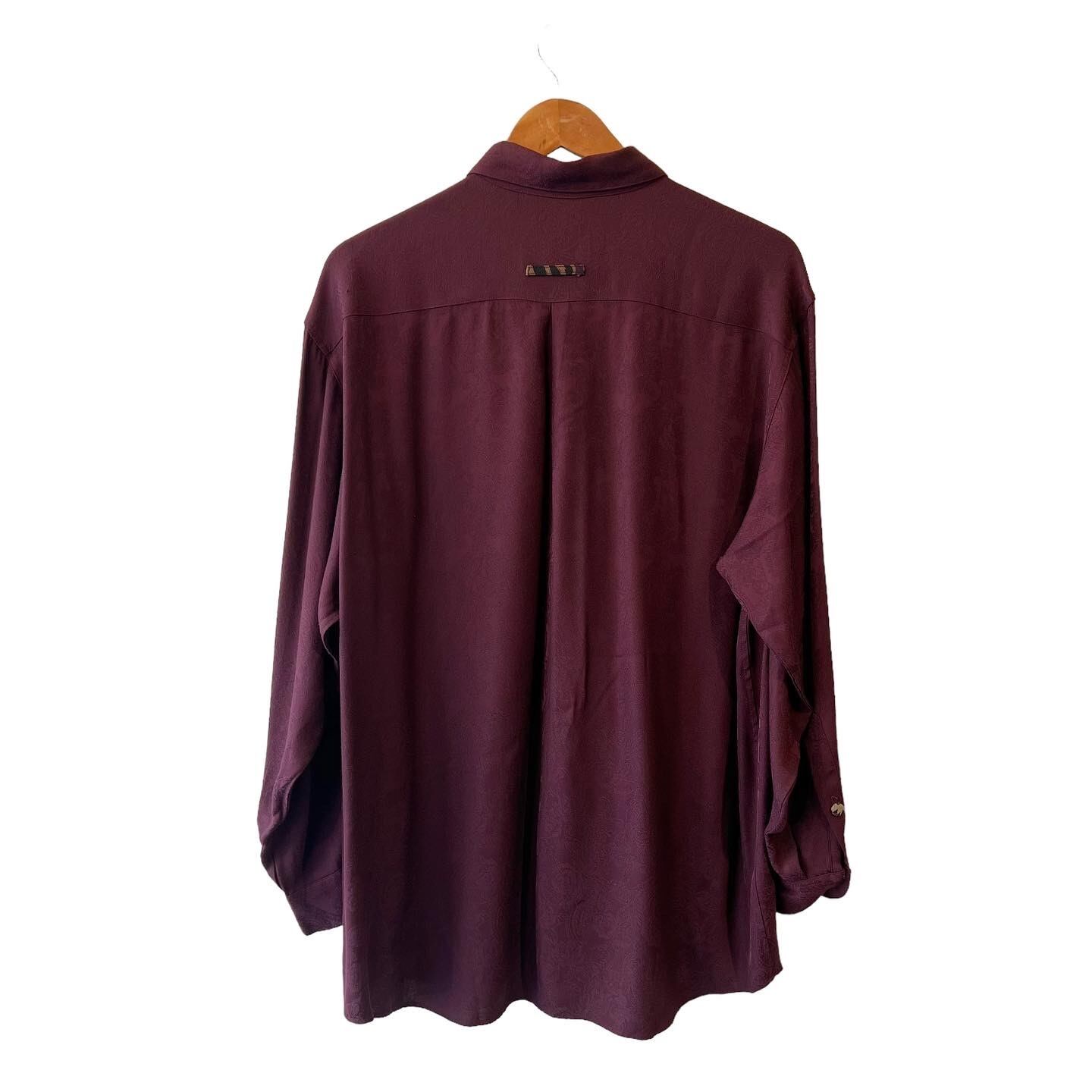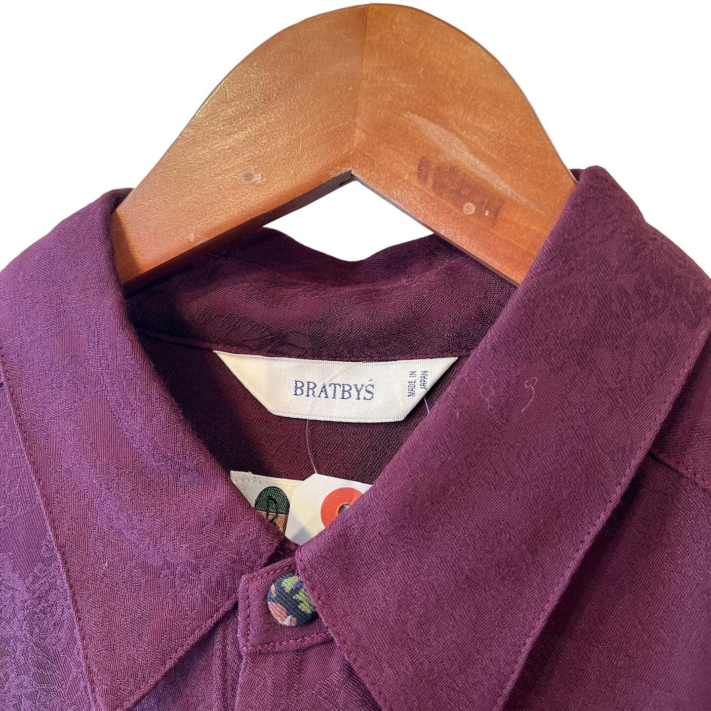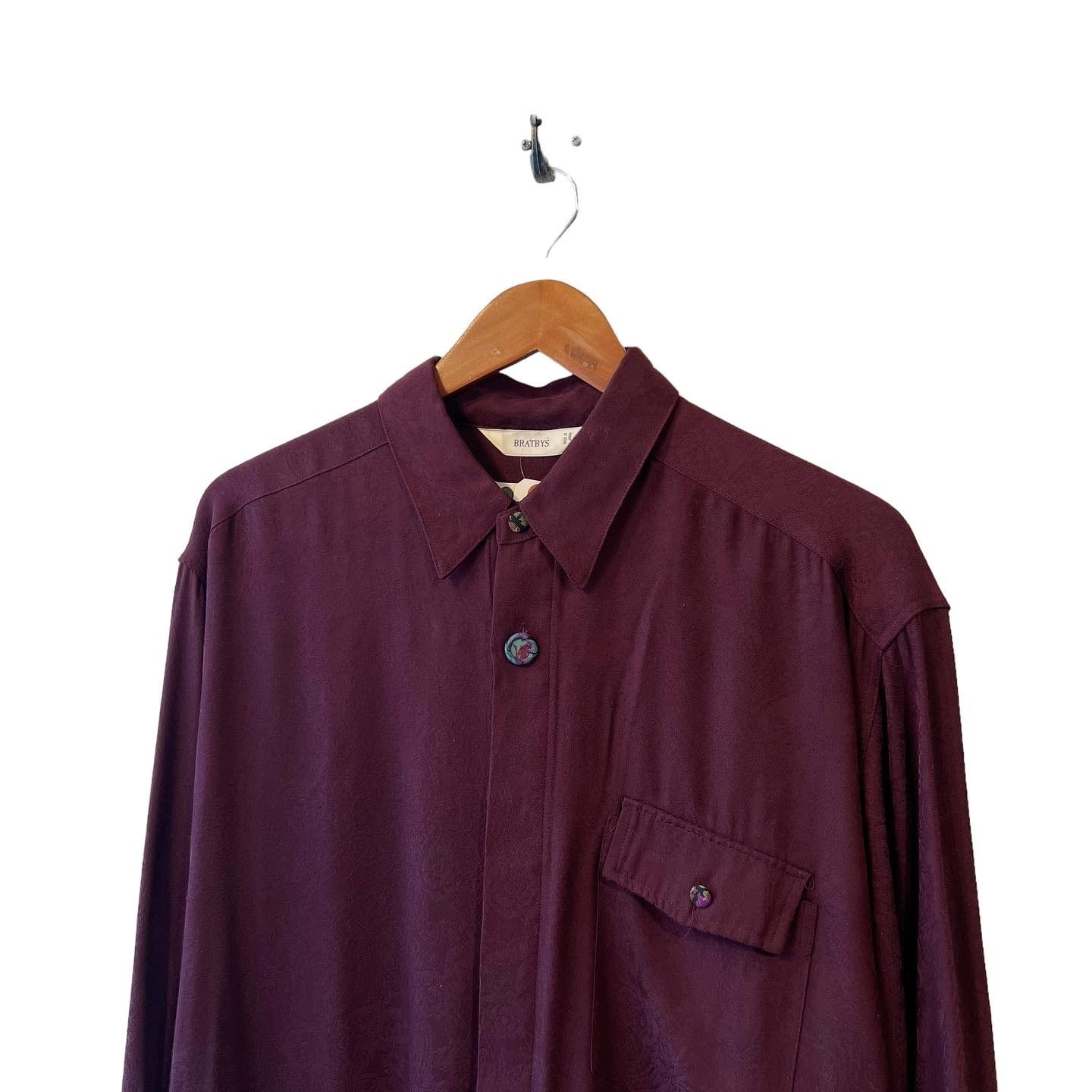 "BRATBYS" Wine-red rayon/acetate jacquard L/S shirt