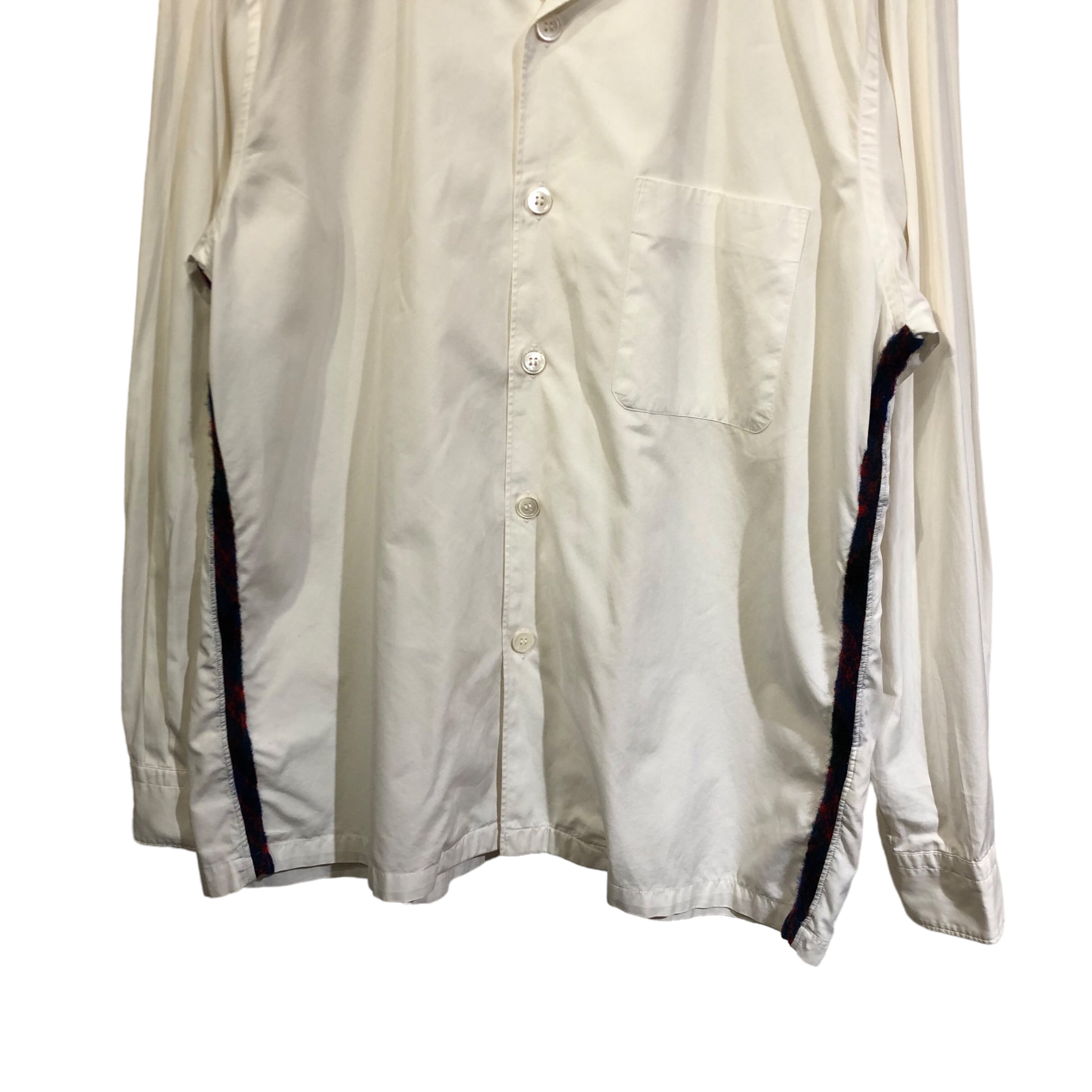 "GARÇONS HOMME" White cotton design L/S open collar felt docking shirt
