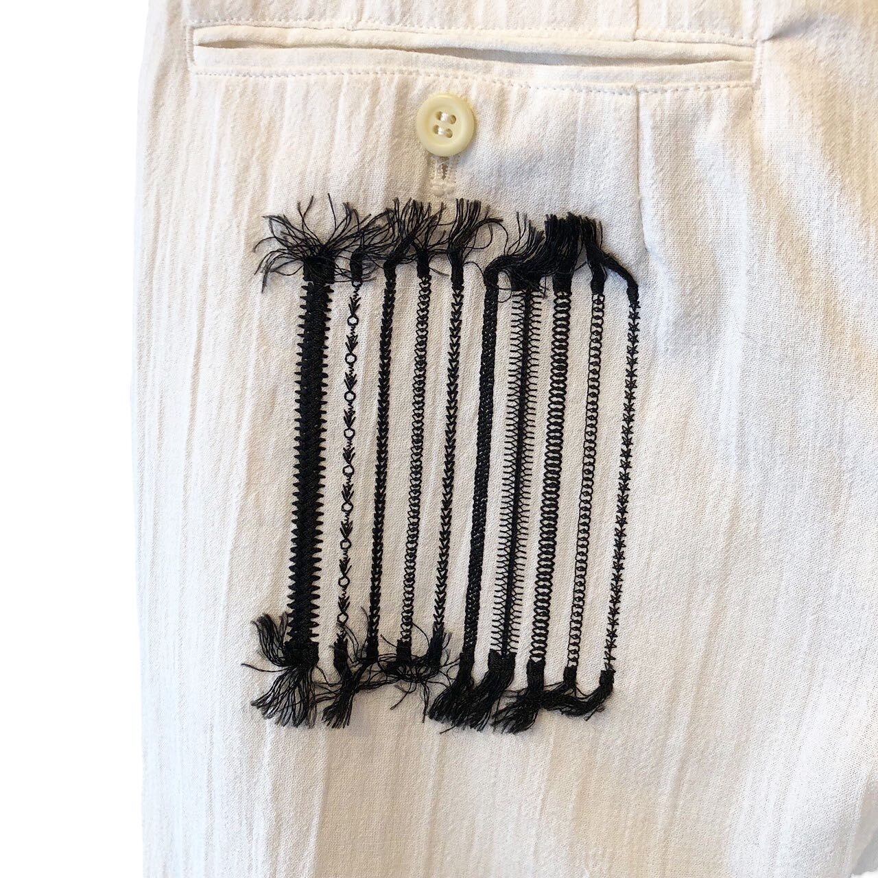 "PASHU" White polyester unique hip stitch pants