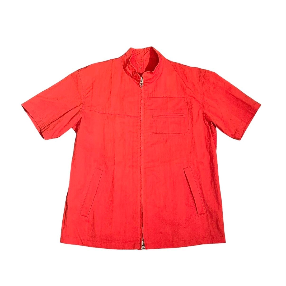 "PPFM" Orange cotton/nylon design S/S zip up shirt