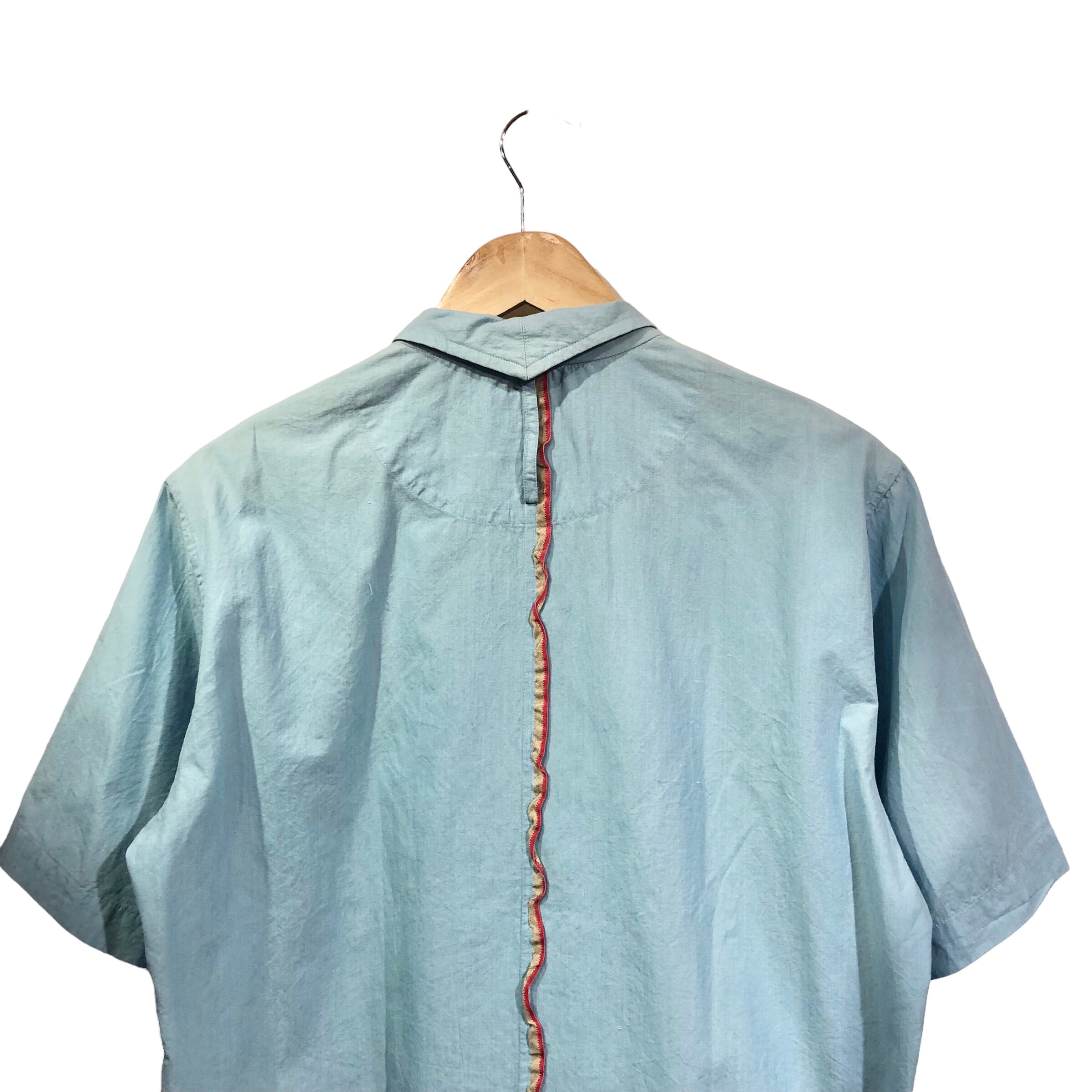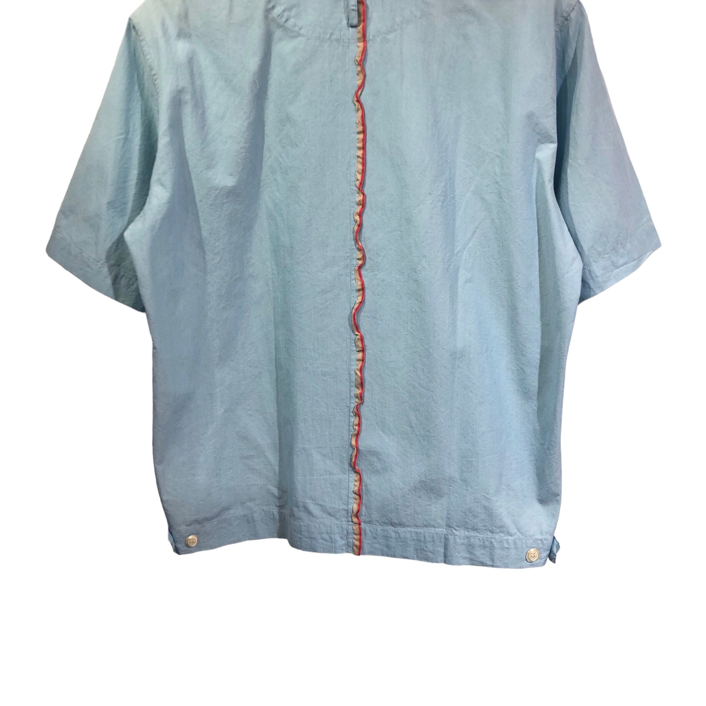 "Jipijapa" Ice blue cotton design S/S zip up shirt