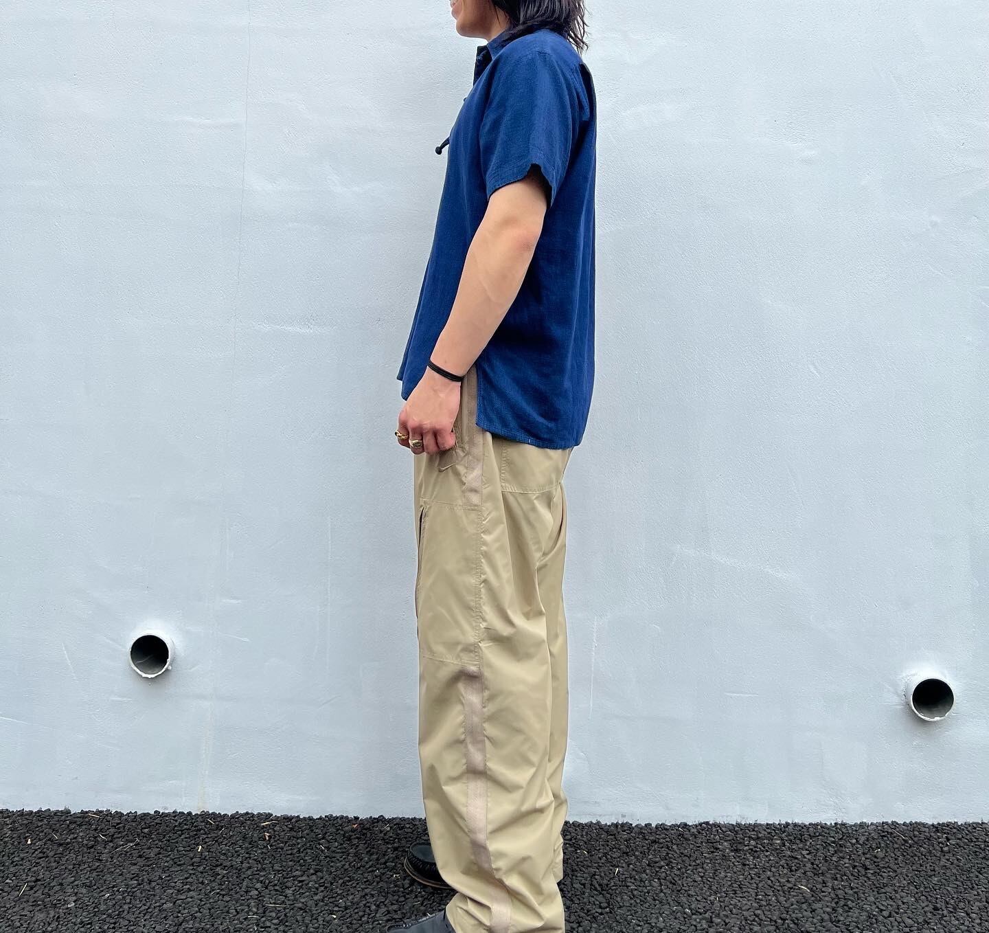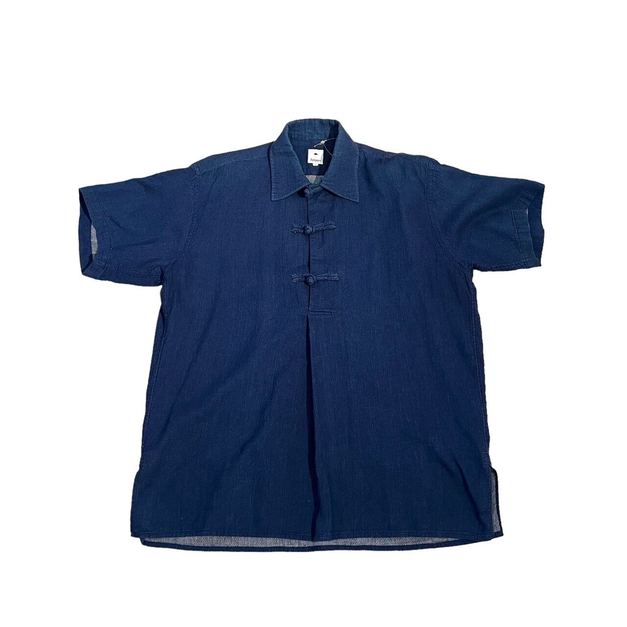 "Jipijapa" Indigo cotton design S/S china button pullover shirt