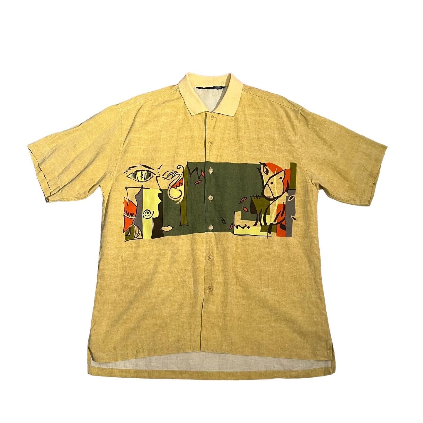 "UMBERTO GINOCHITTI" Rayon/Linen/Cotton/Polyester S/S switching shirt