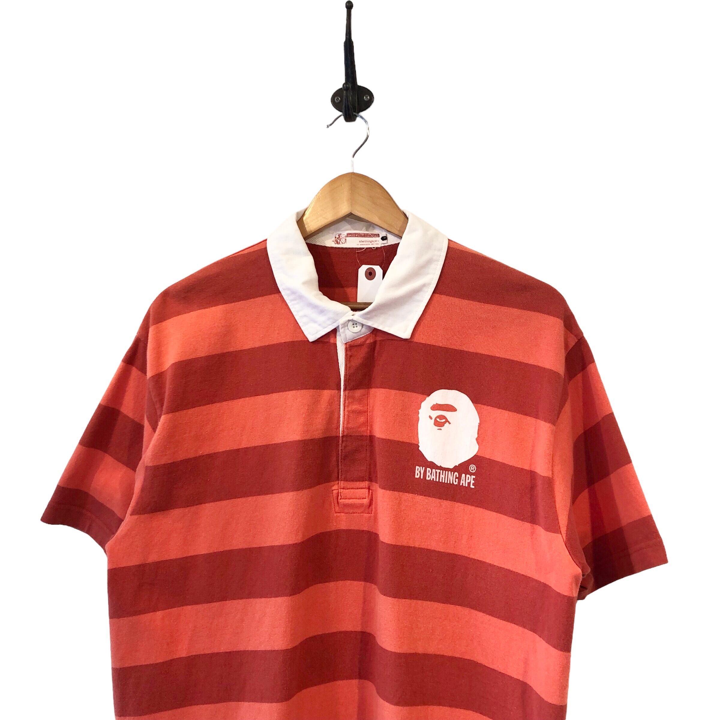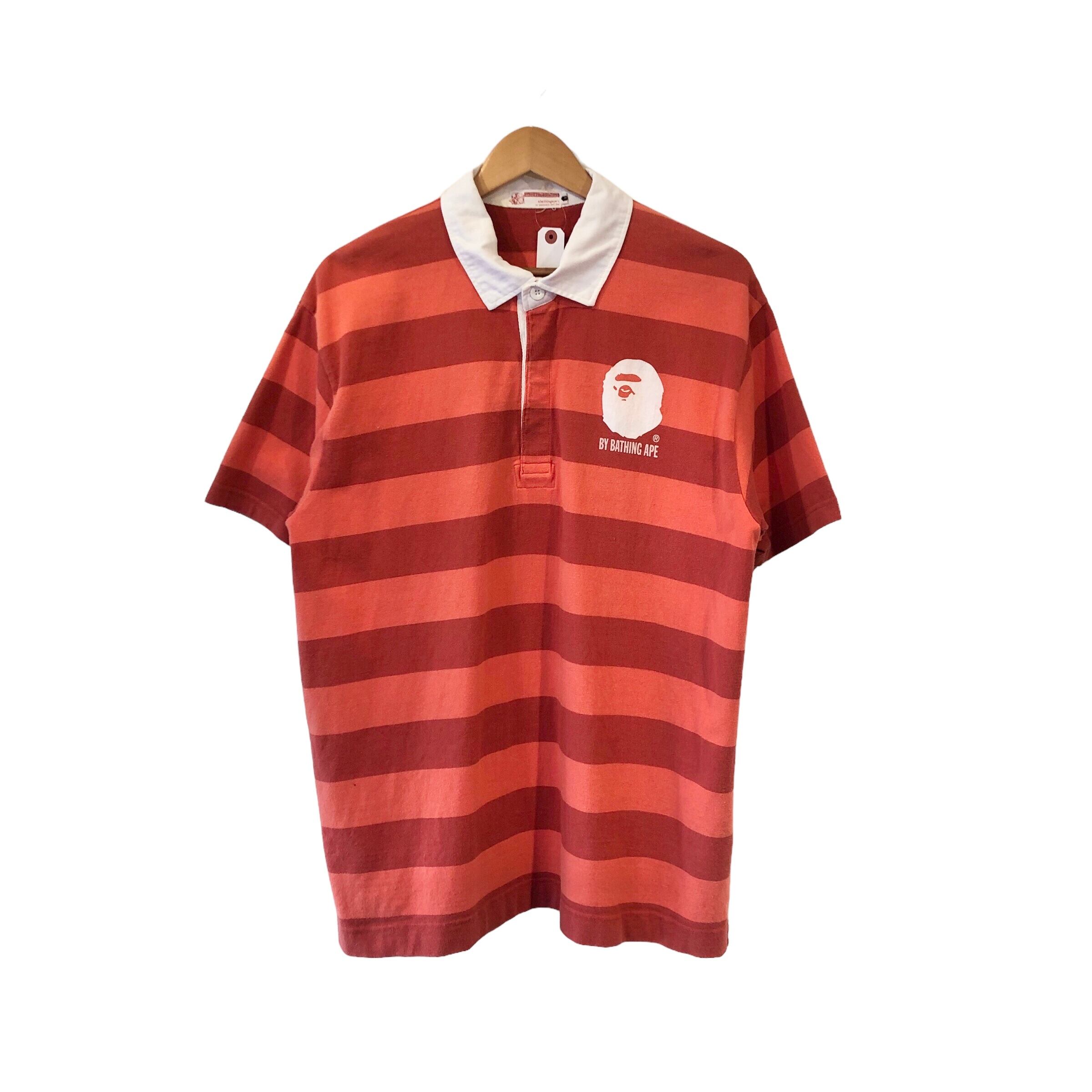 "A BATHING APE" Logo printed border cotton design S/S rugby polo