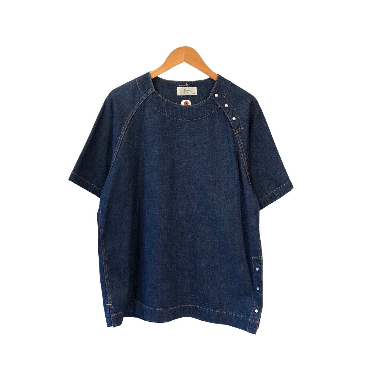 "PHINGERIN" Indigo cotton unique neck S/S pullover top