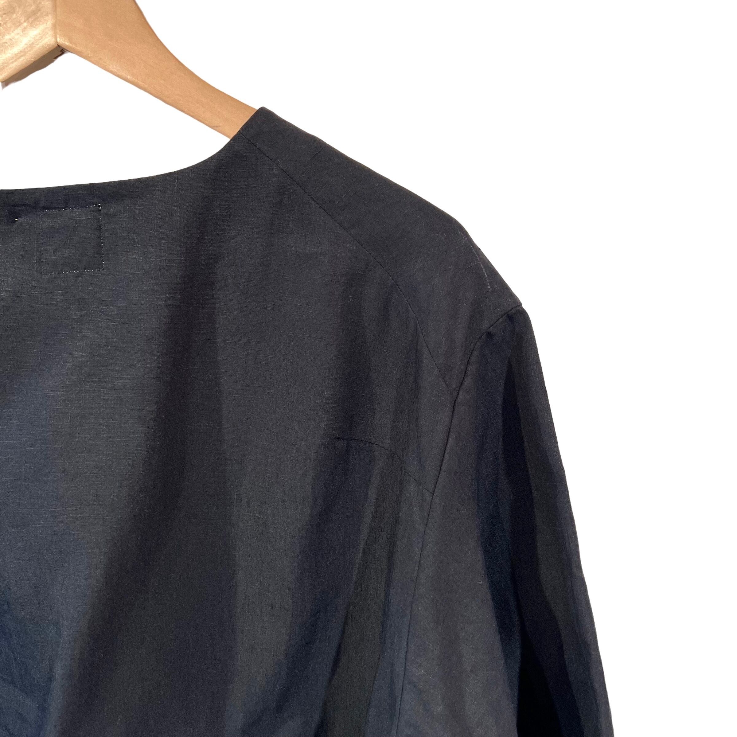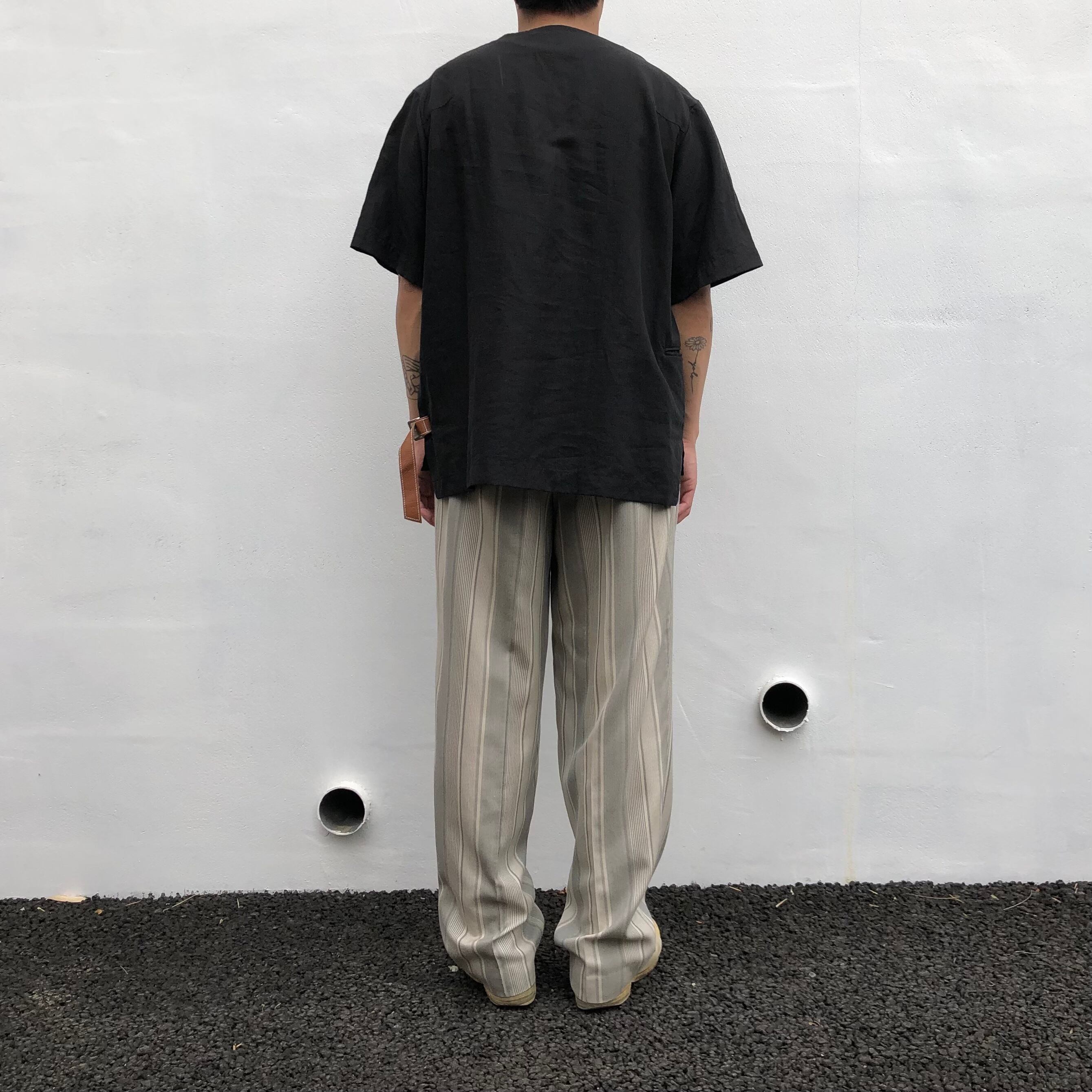 "SUNSEA" Balck linen S/S side belt pullover shirt