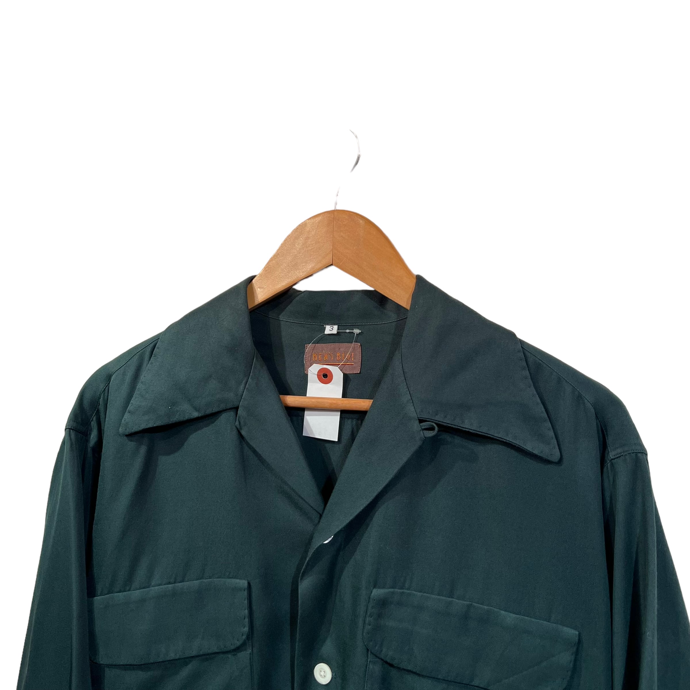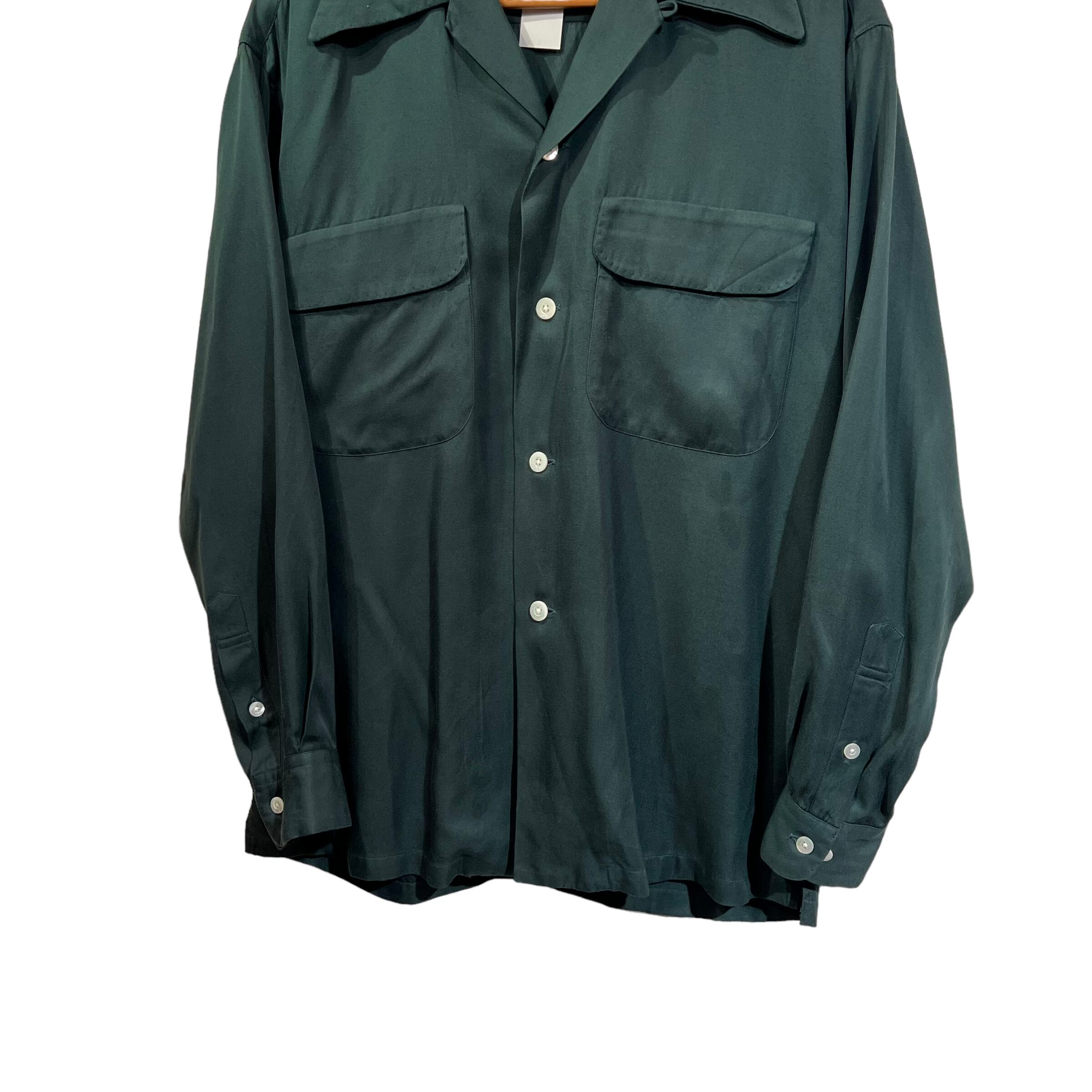 "MEN’S BIGI" Dark green rayon L/S open collar shirt