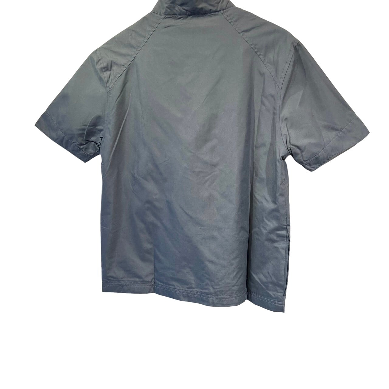 "OTARIE" Smoke grey poly design S/S stand collar zip up shirt
