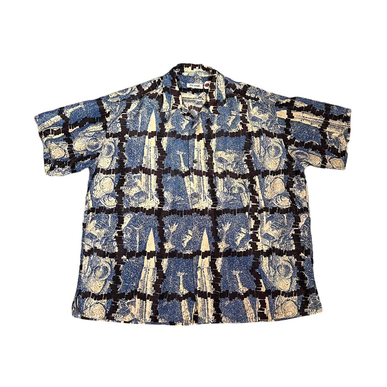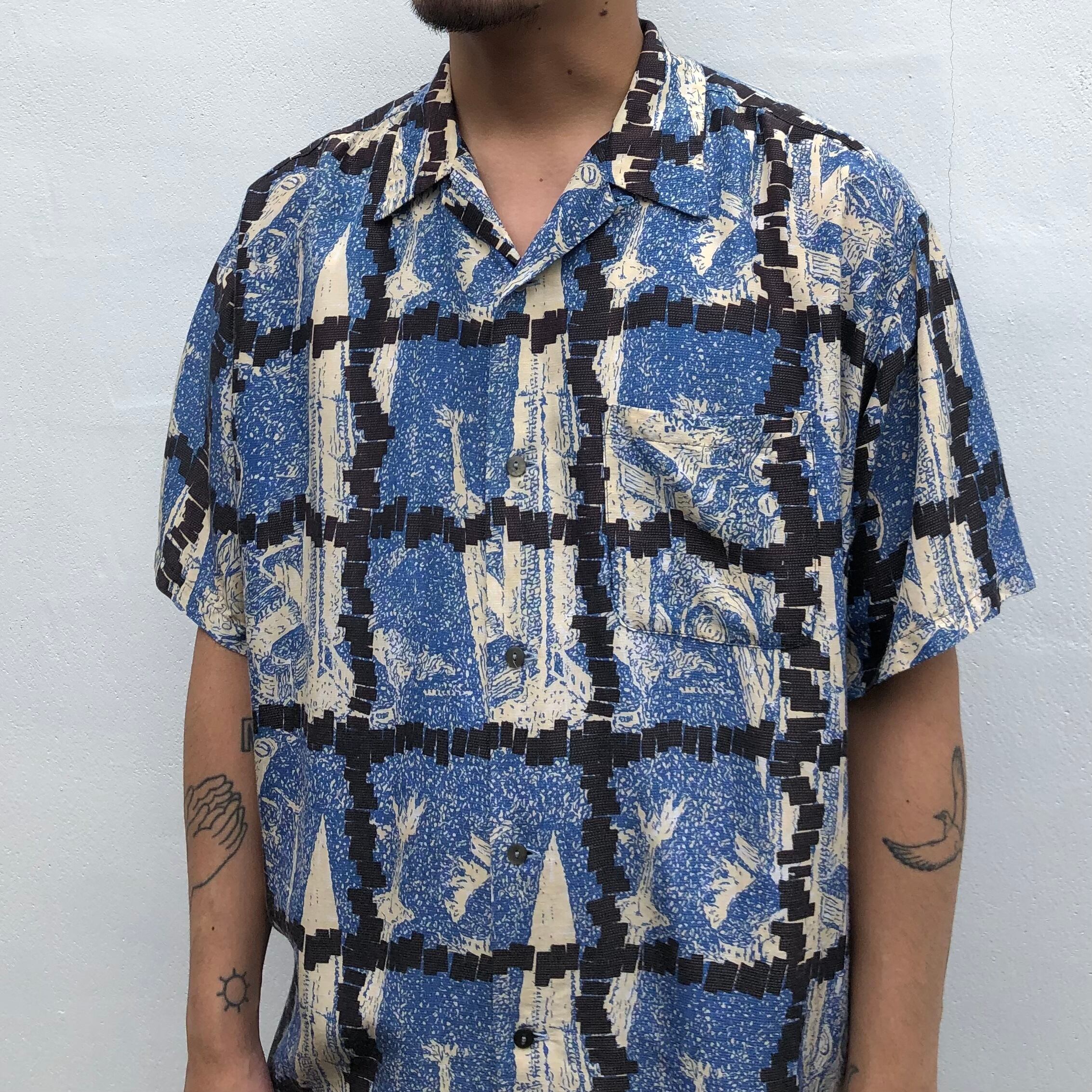 "TETE HOMME" Unique pattern rayon design S/S open collar shirt