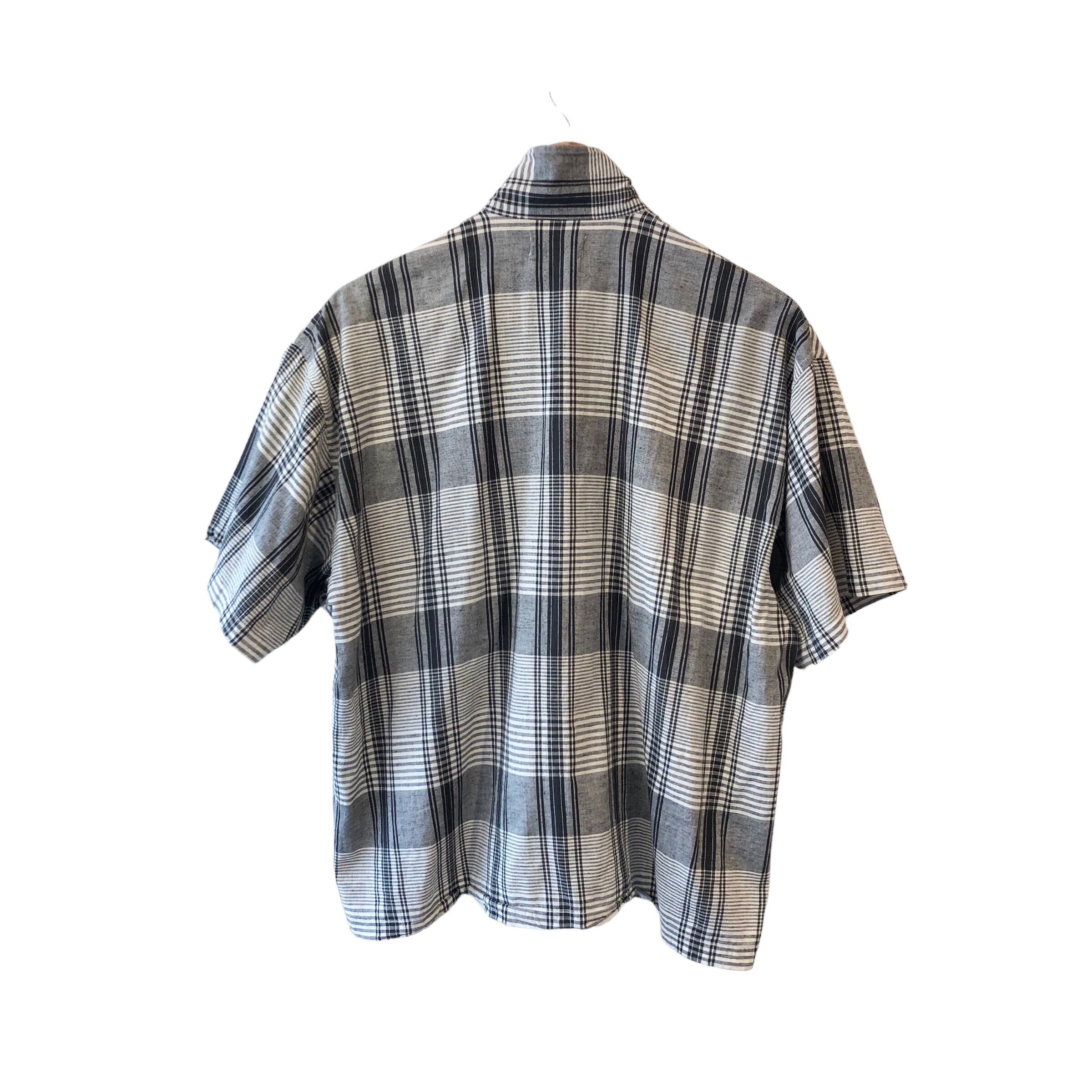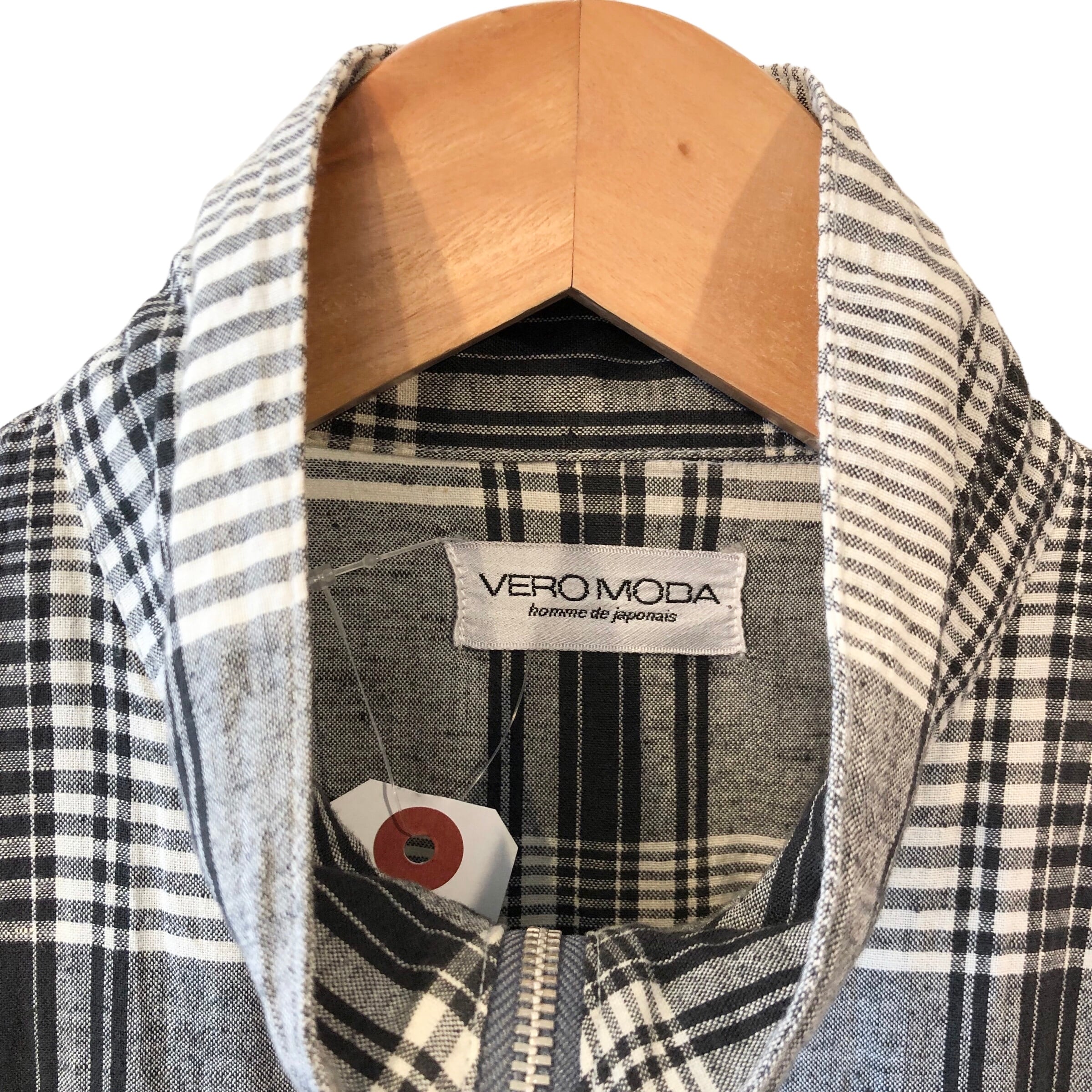 "VERO MODA" Check cotton/linen design S/S zip up stand collar shirt