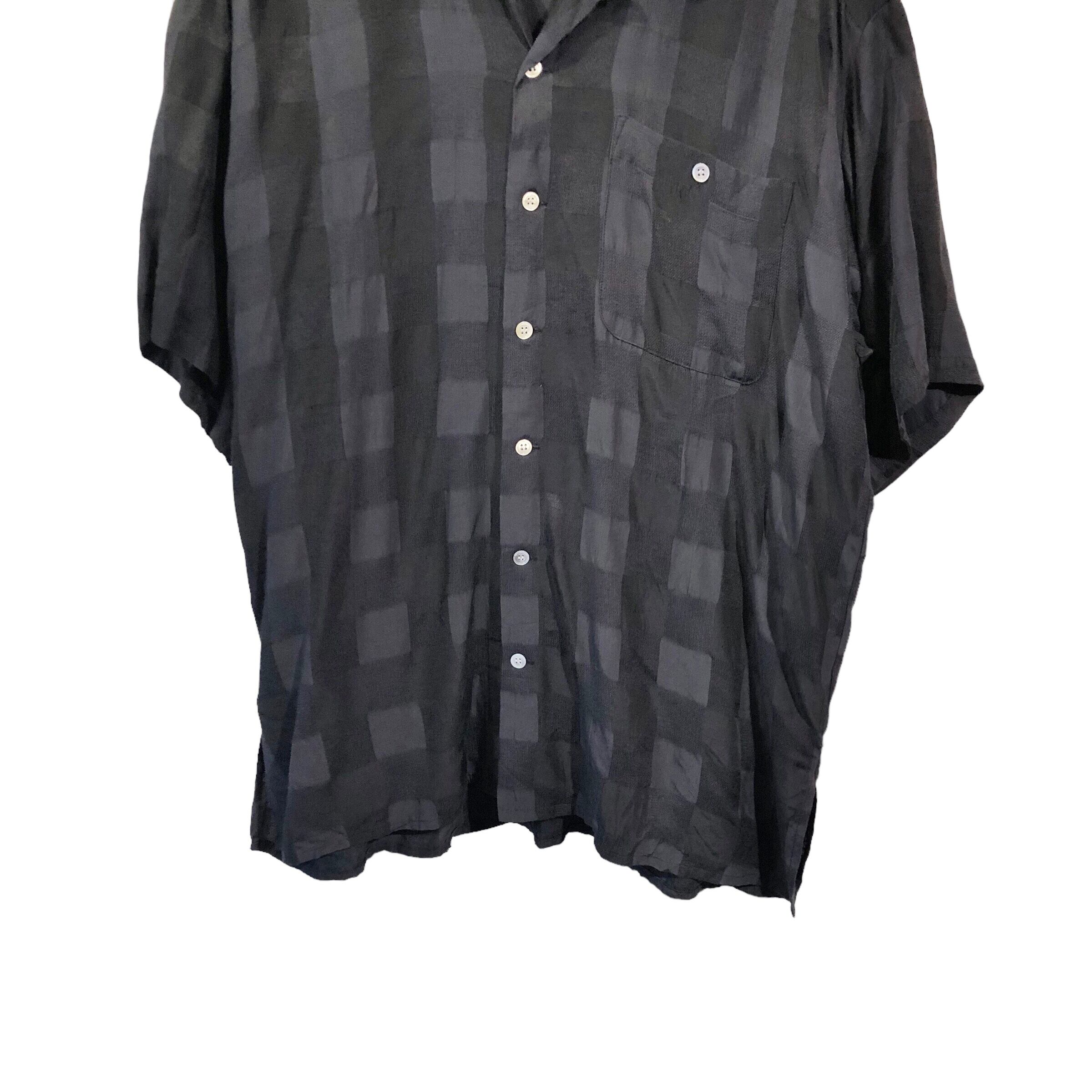 "Rich Cresson" Check jacquard acetate/rayon design S/S open collar shirt