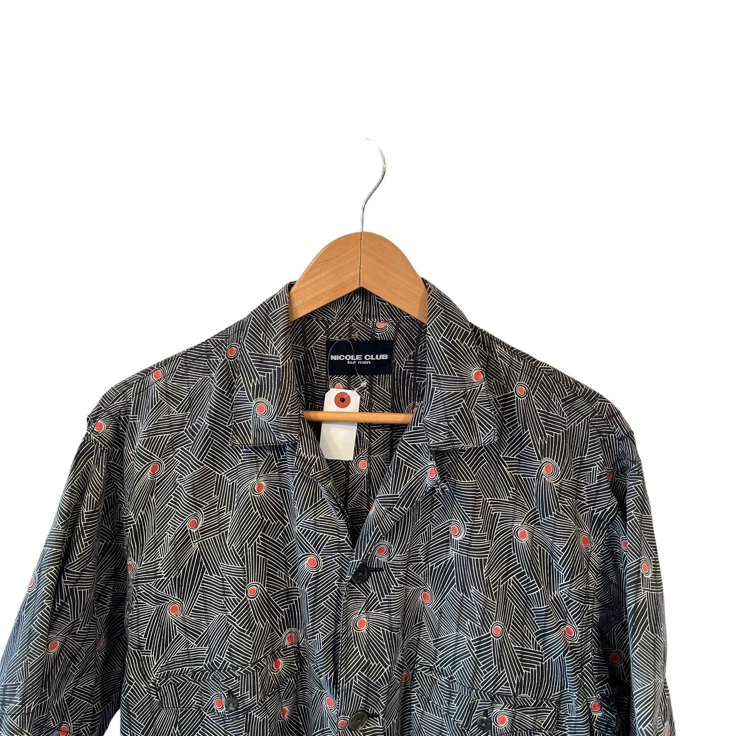 "NICOLE CLUB" Unique pattern cotton design S/S open collar shirt