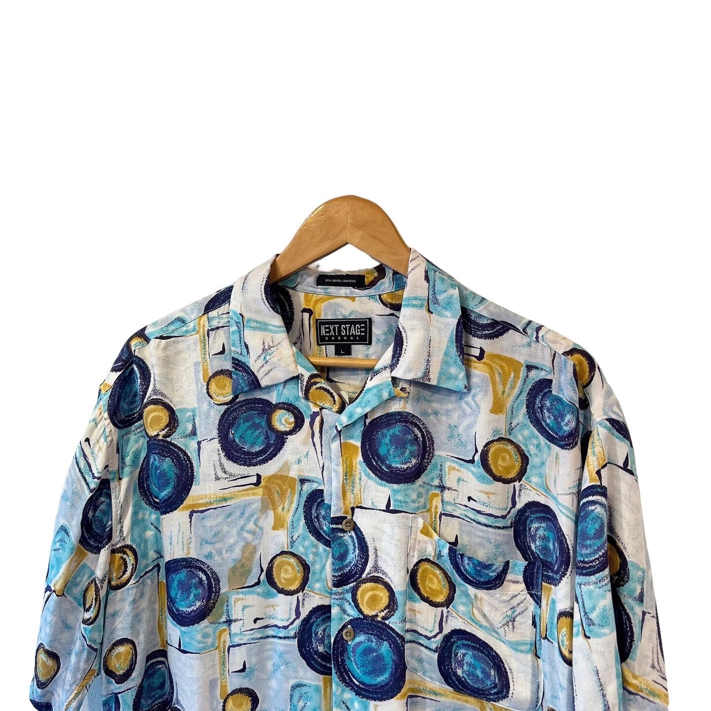 "NEXT STAGE" Art pattern rayon S/S open collar shirt