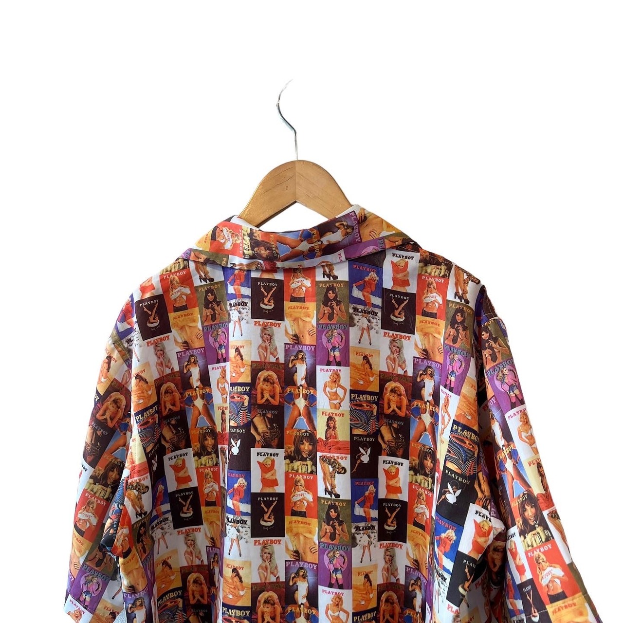 "PLAY BOY" Pinup girl pattern polyester S/S open collar shirt
