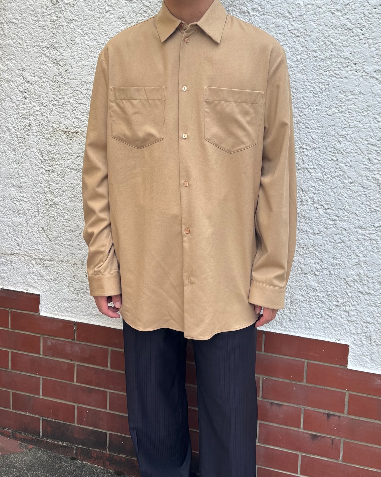 "CARVEN" Beige wool L/S pocket shirt