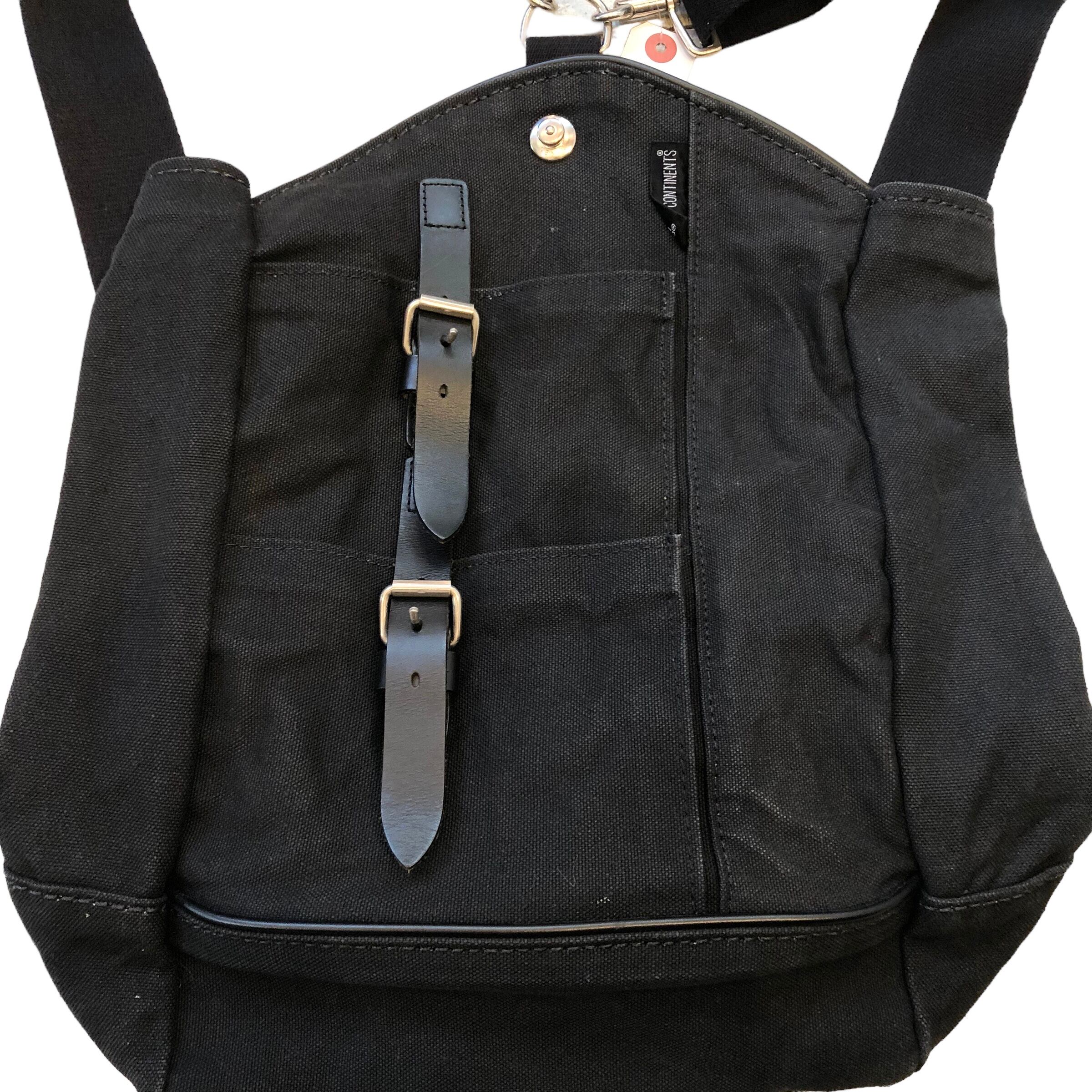 "TRANS CONTINENTS" Black cotton/leather design ruck suck