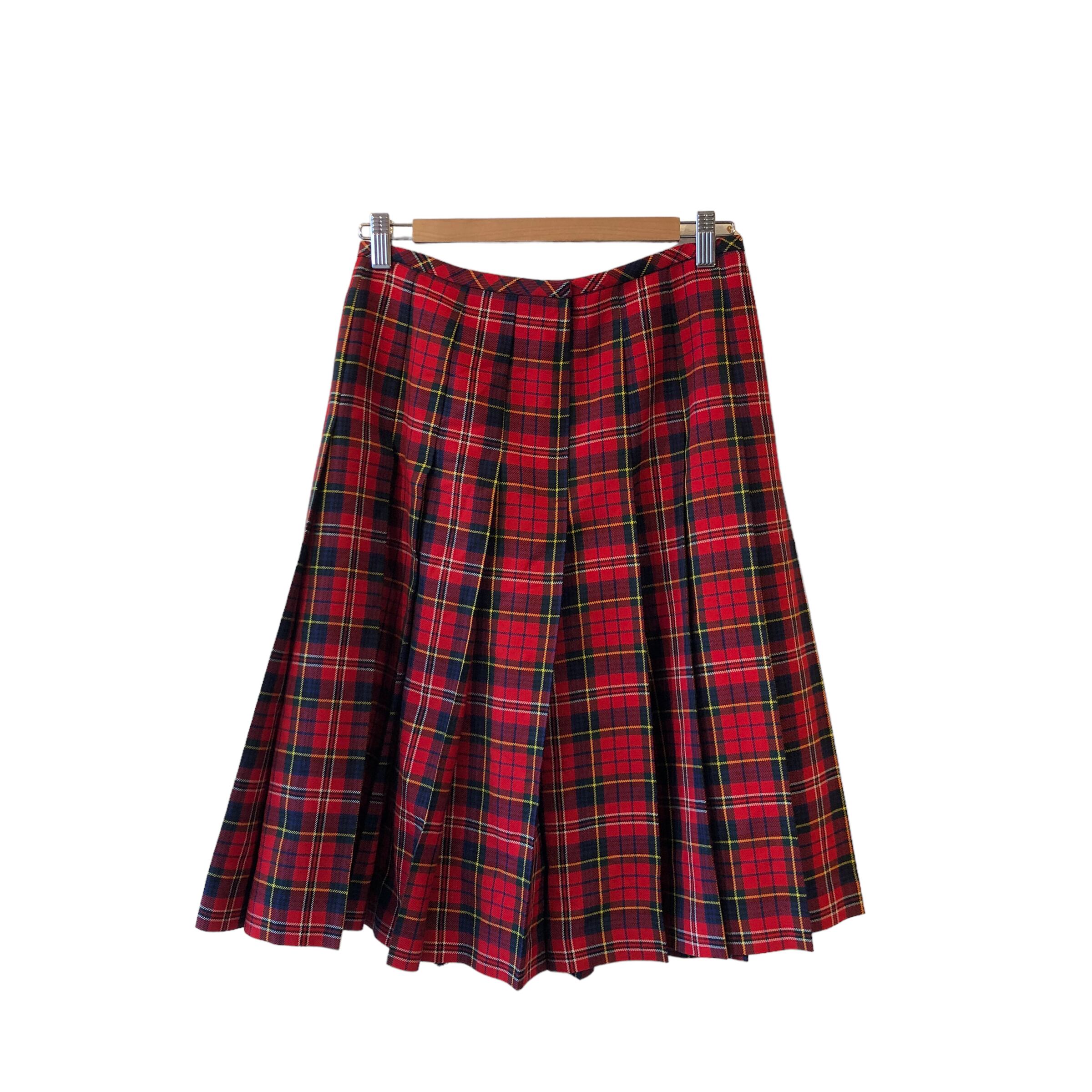 "robe de chambre COMME des GARCONS" Check pattern wool design pleats skirt
