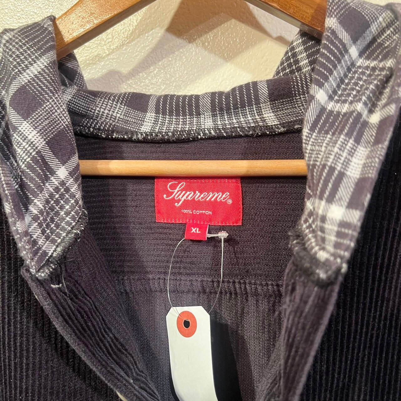 "Supreme" Black cotton corduroy design L/S switch hooded shirt