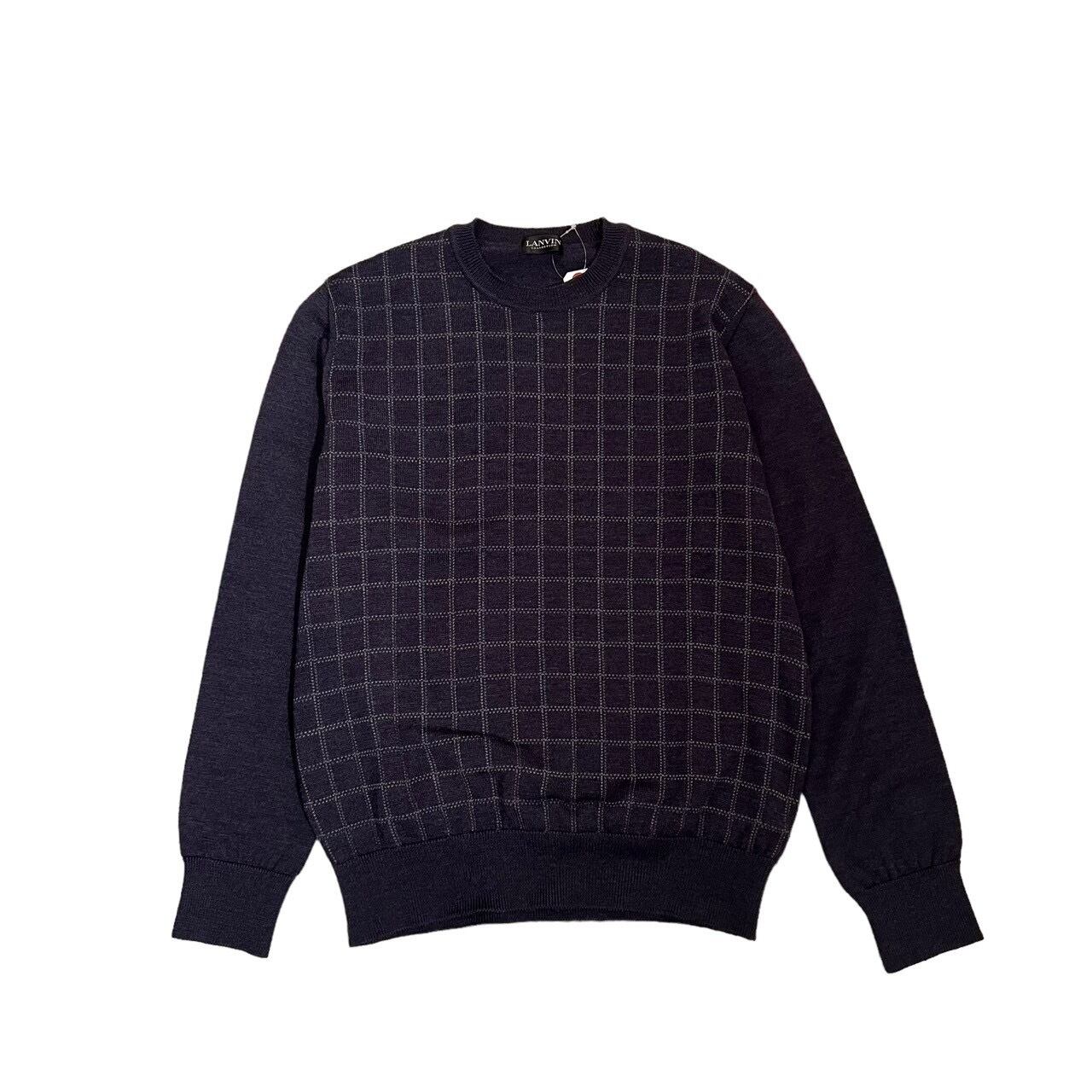“LANVIN” Wool jacquard check pattern crewneck sweater