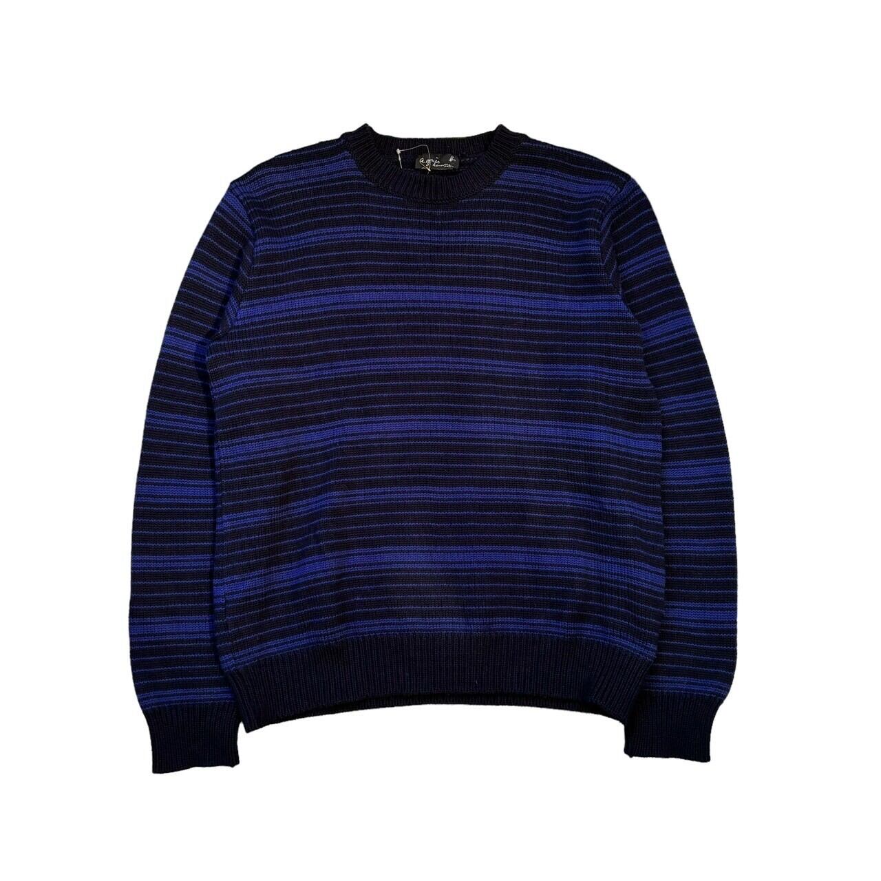"agnes b." Border wool design crewneck sweater
