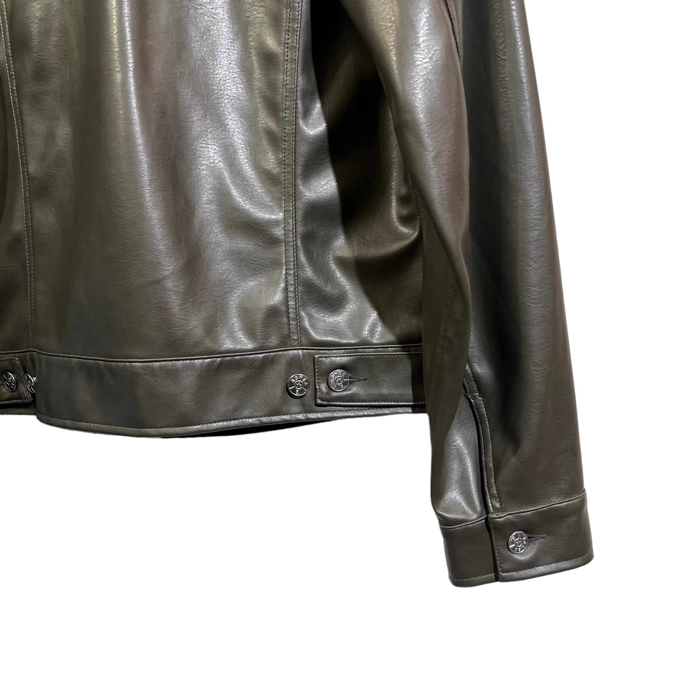 "agnes b " Olive PVC leather trucker jacket