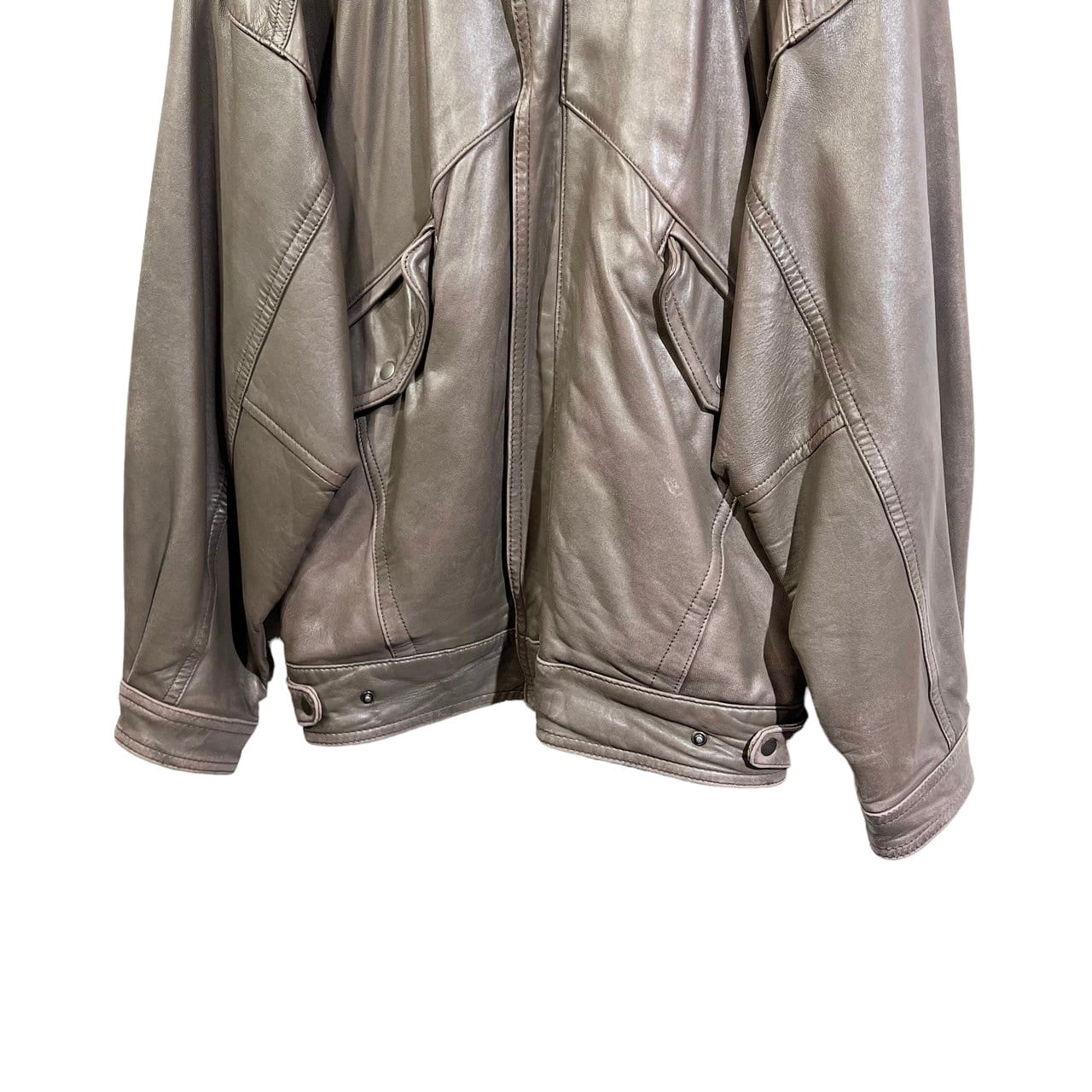 "INTERMEZZO" Greige lamb leather design stand collar blouson
