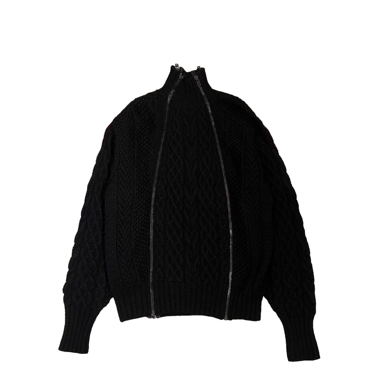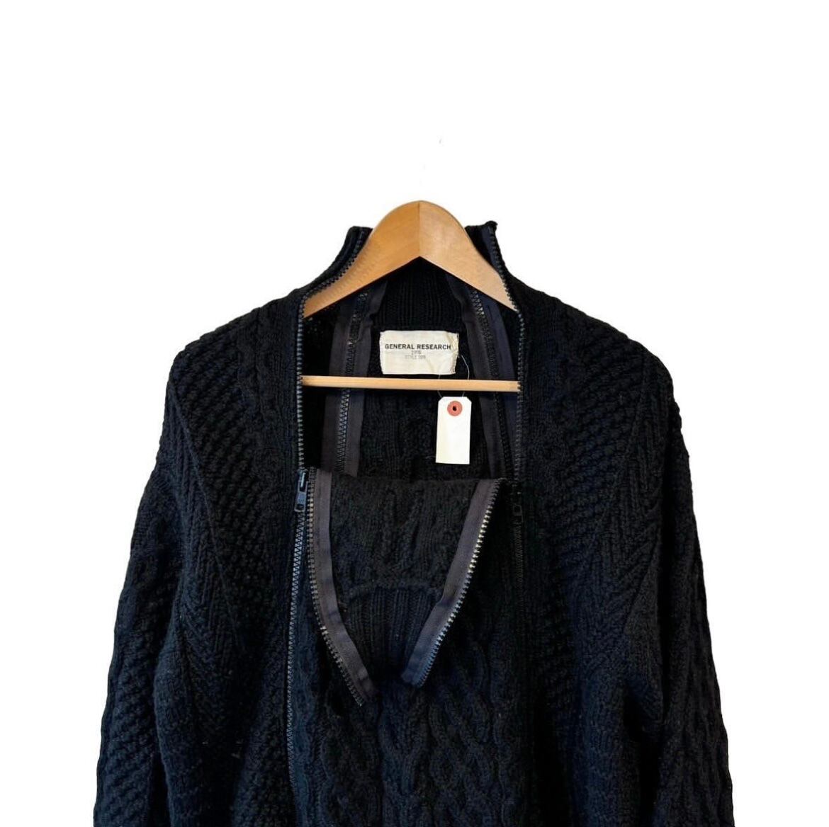 “GENERAL RESEARCH” Black wool 4th stand zip fisherman sweater