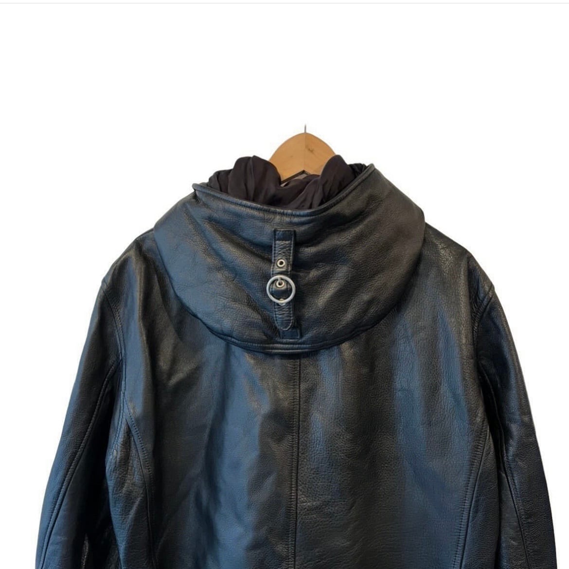 "Jipijapa" Black leather belt design hooded zip jacket