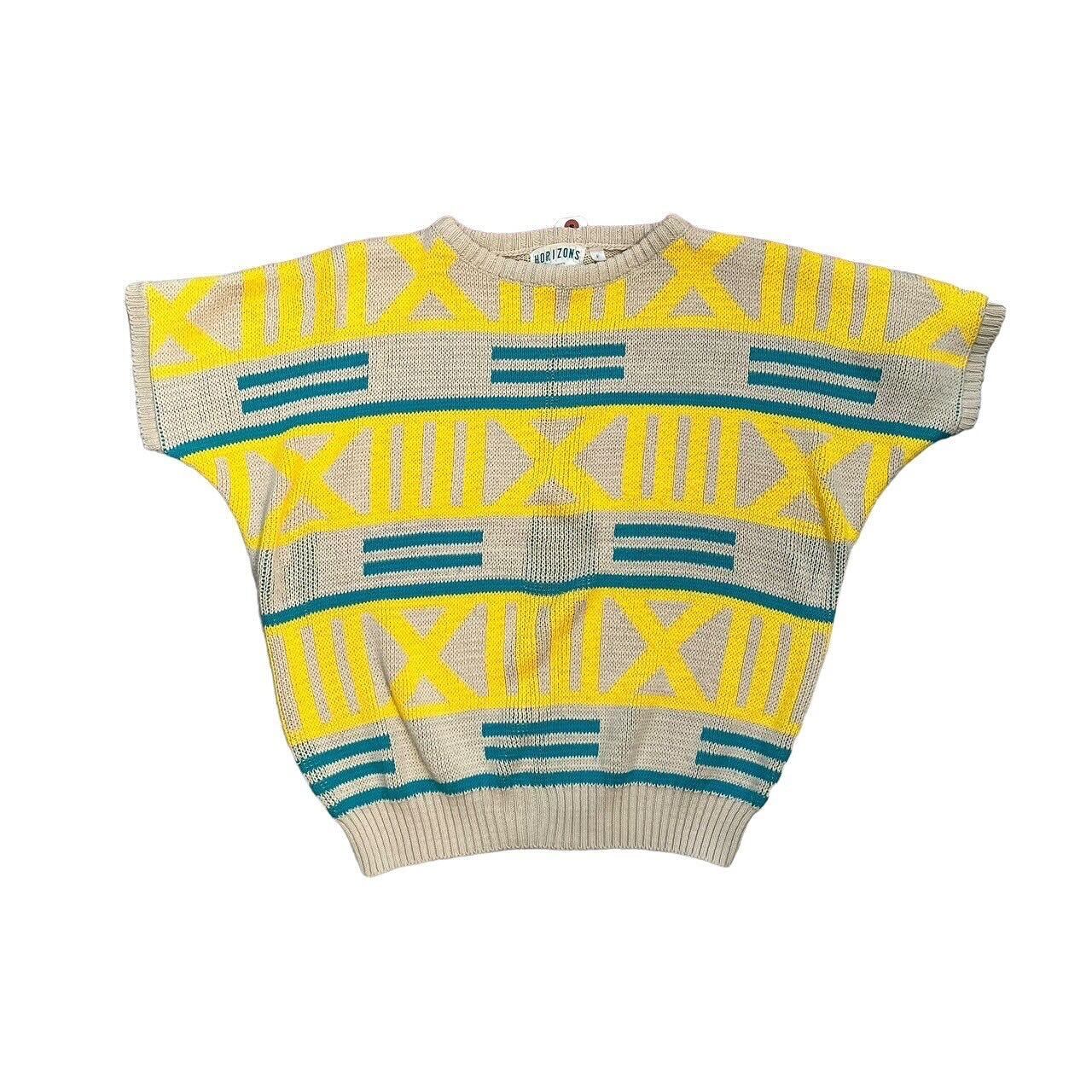 “HORIZONS” jaguard acrylic dolman sleeve S/S knit