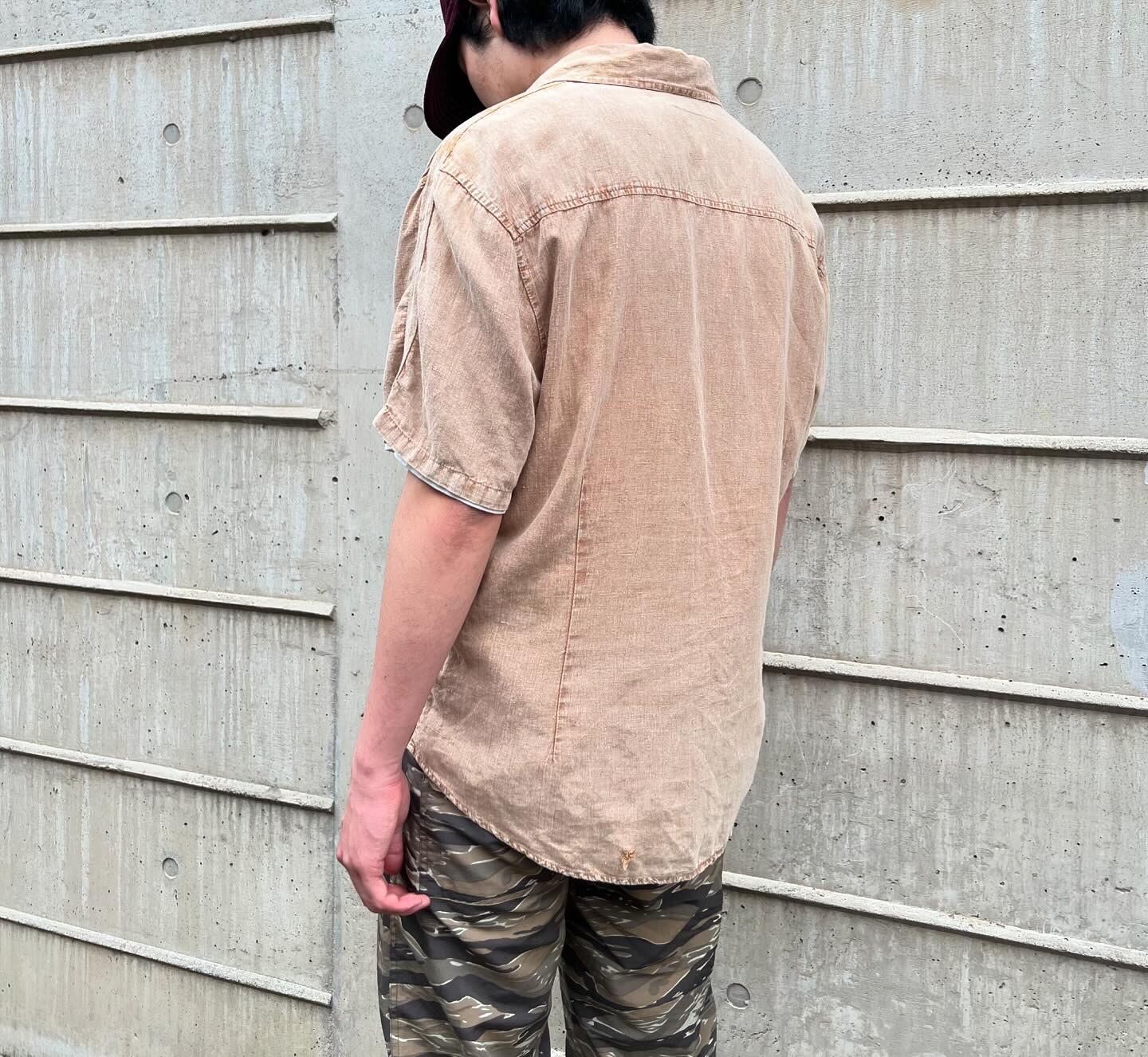 “CHECKPOINT” Fade brown cotton/linen design S/S skipqer shirt