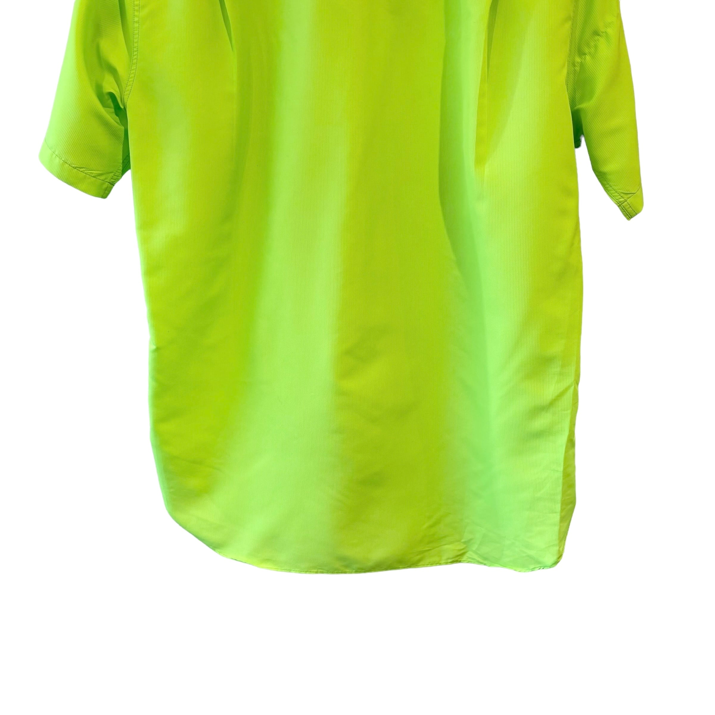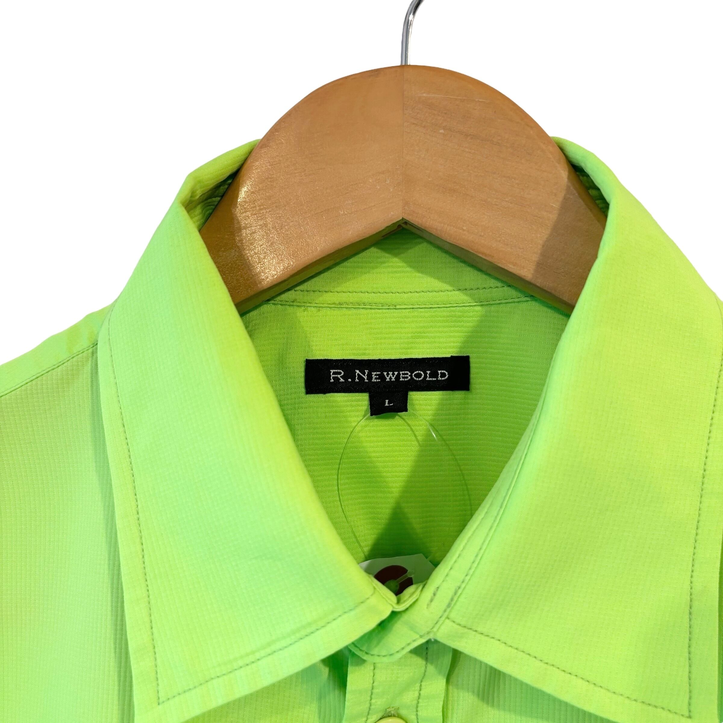 "R.NEWBOLD" Lime green poly design S/S pocket shirt